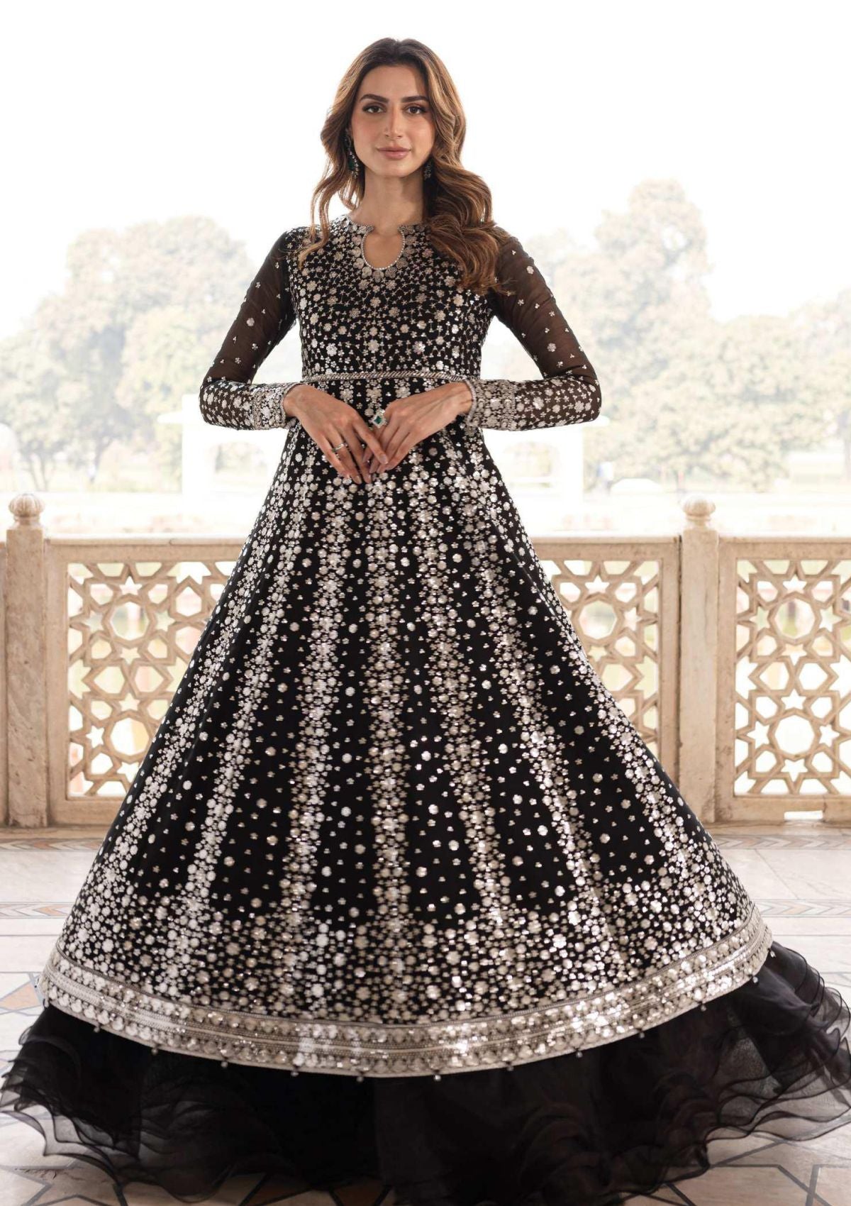 - EMBROIDERED CHIFFON FRONT, BACK BODICE AND BORDER