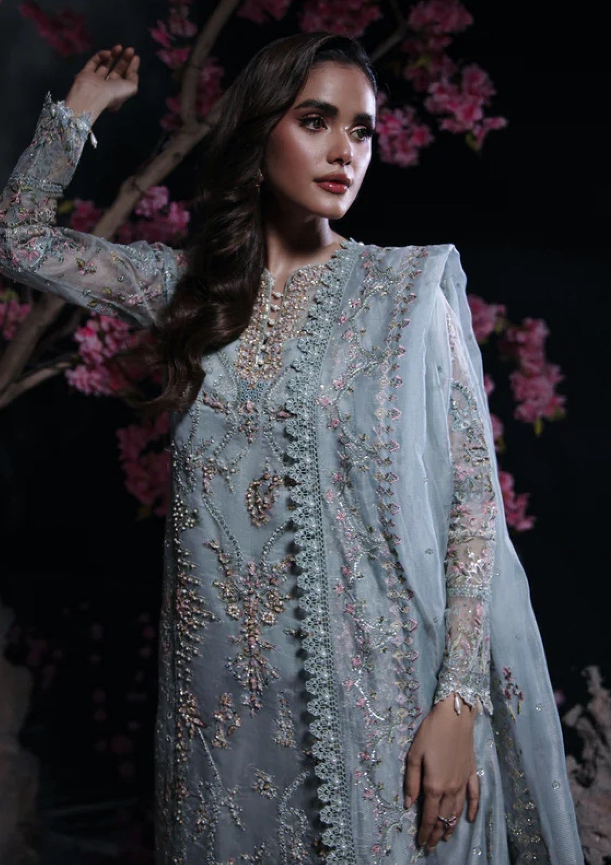 - Embroidered and Sequined Front Panel on Net(Hand Embellished)