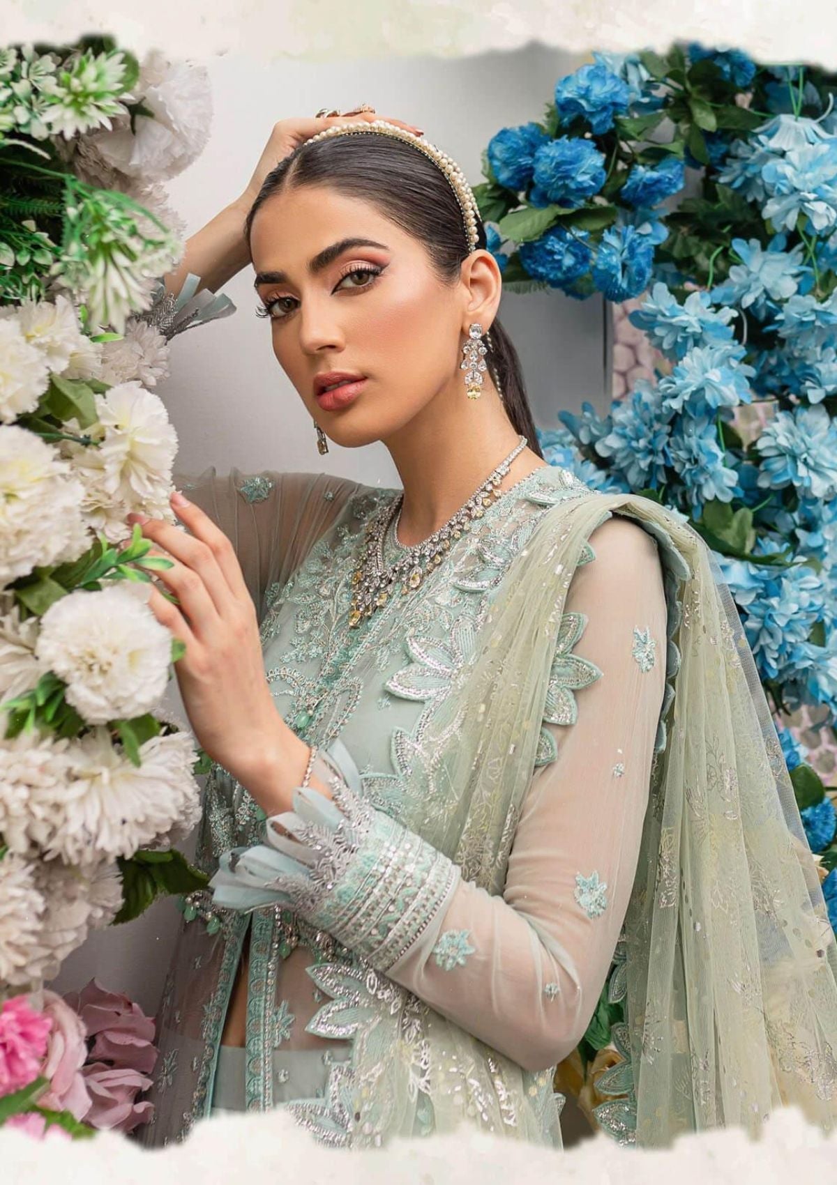 Embroidered Sleeve border on Organza