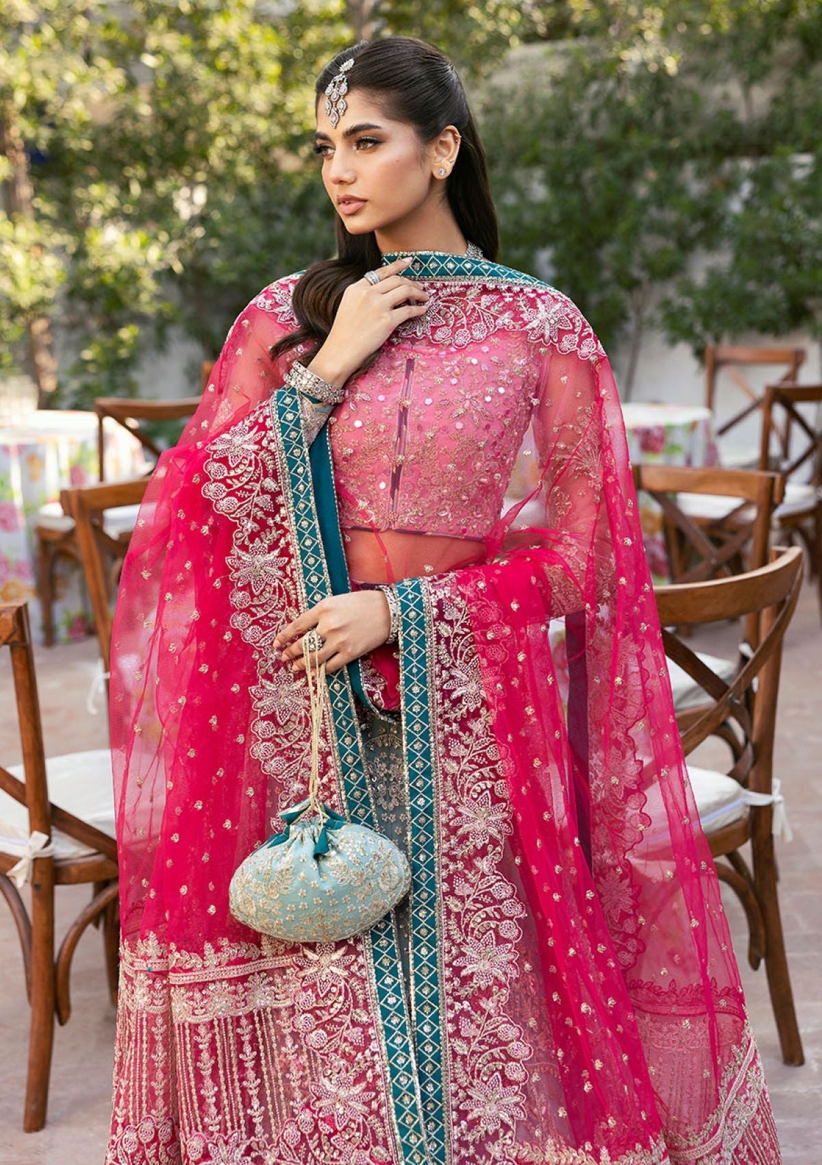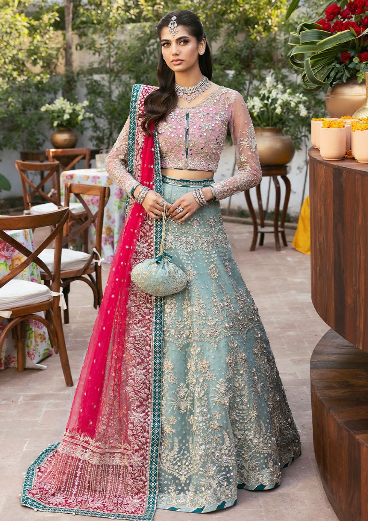 - Embroidered and sequined organza border for dupatta