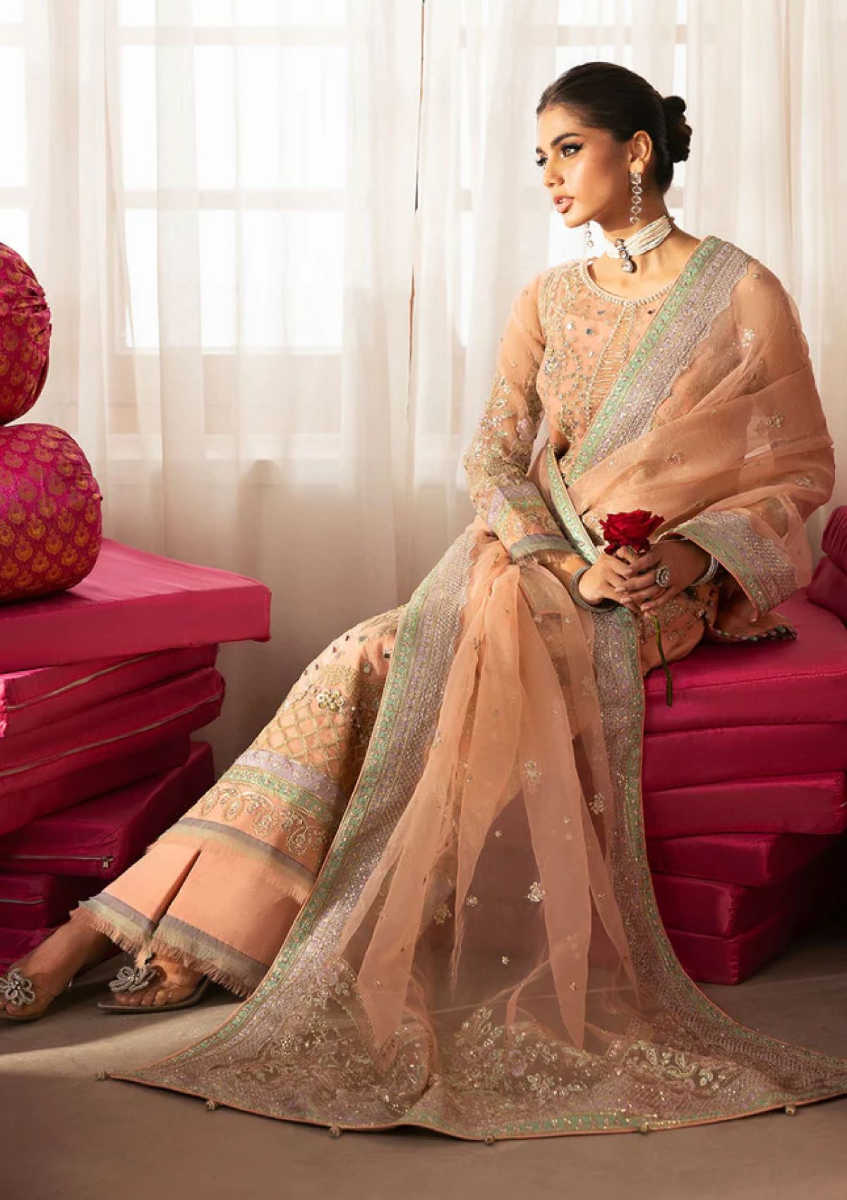 - Embroidered and sequined organza dupatta