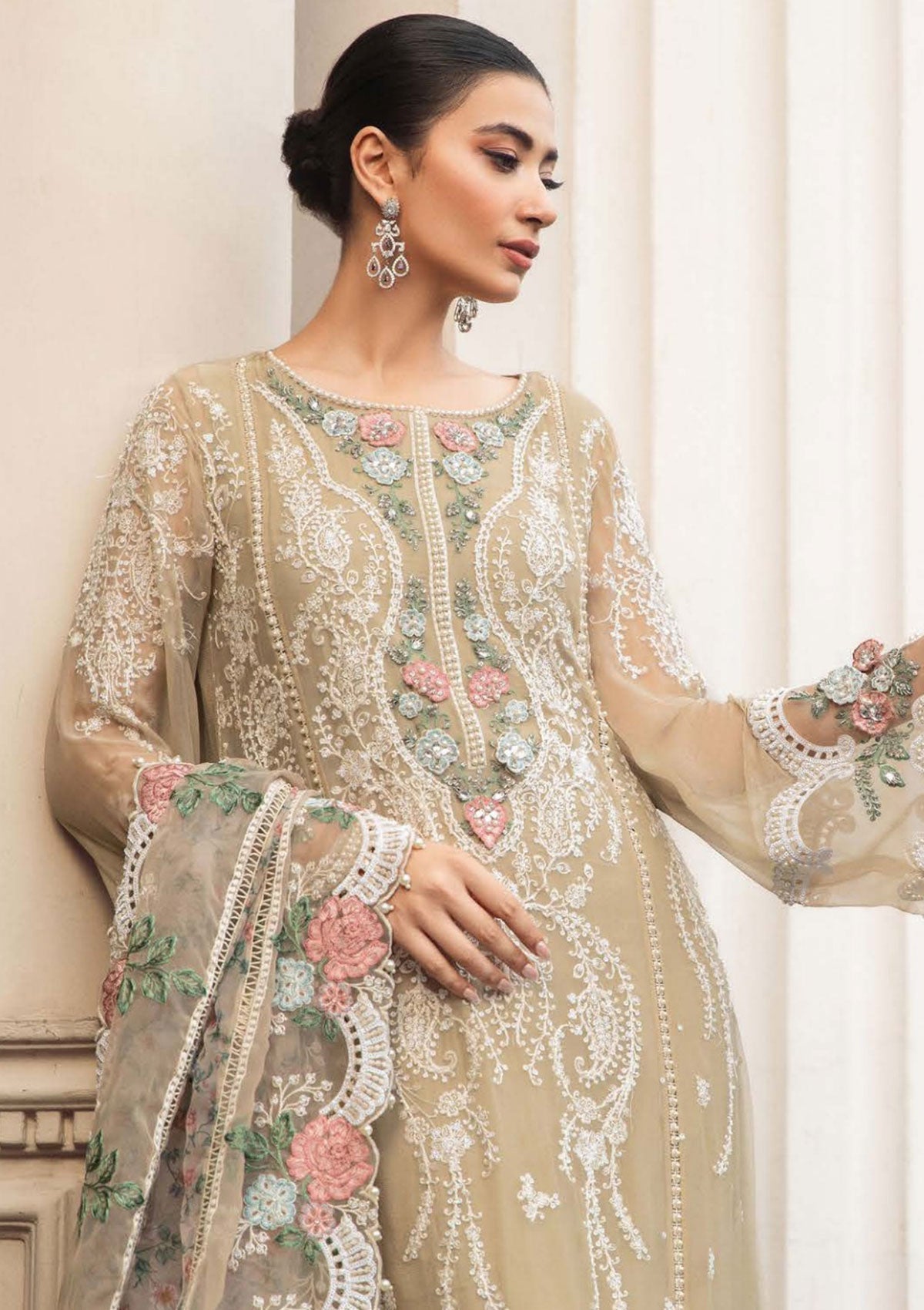 - Embroidered Pure Chiffon Center Panel with Hand Embellishment 3D Flowers
