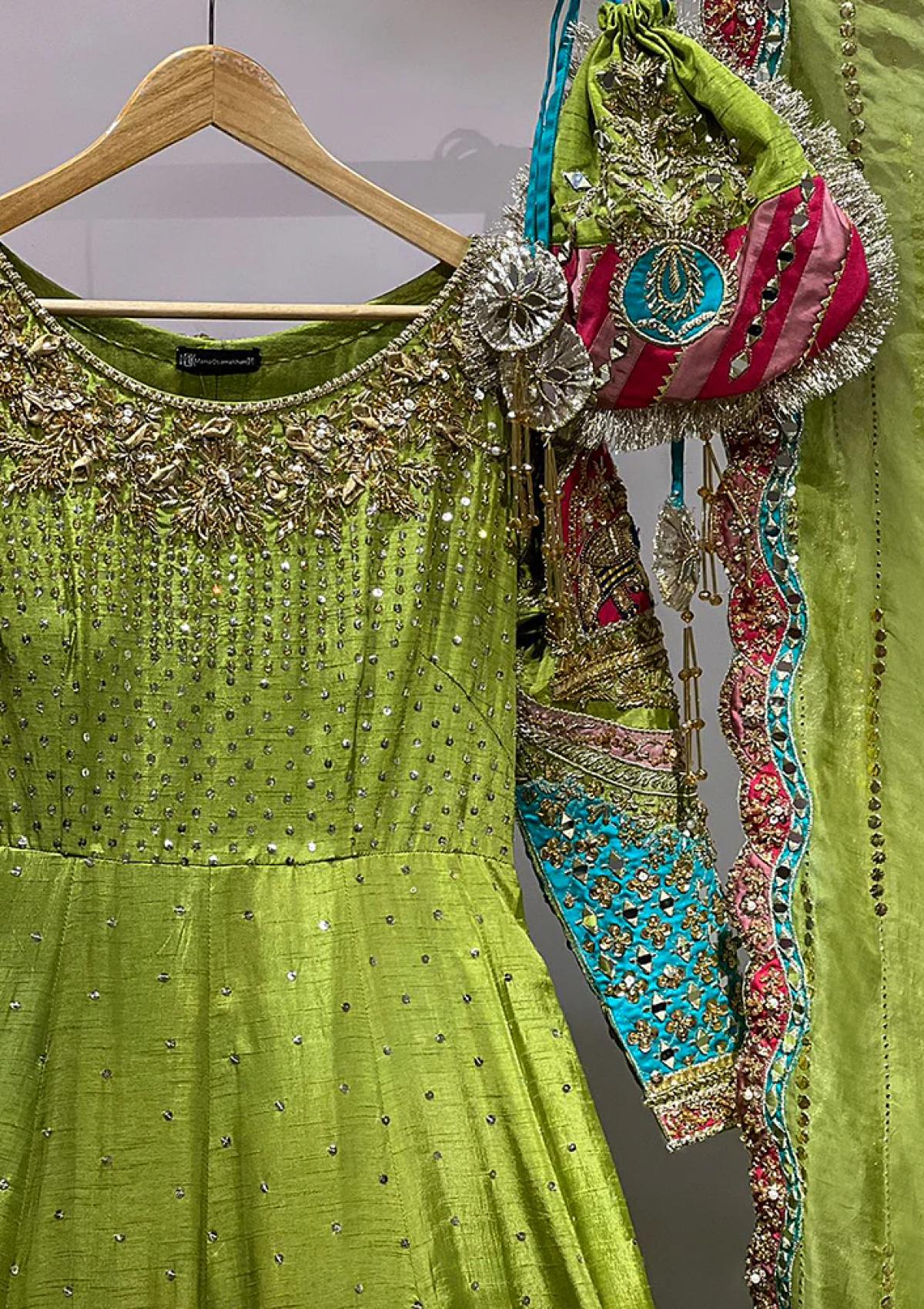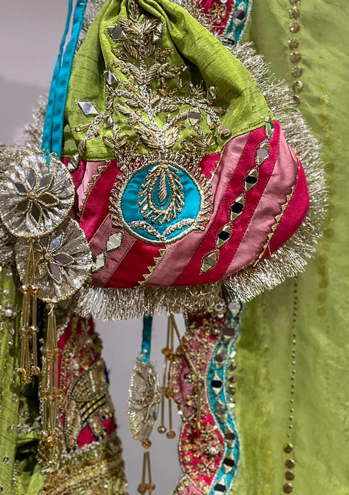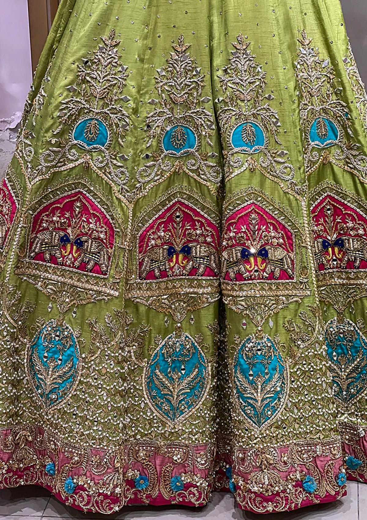 This beautiful dress "Jahanara" so perfectly defines elegance and grace. The marvelous golden tila and sequinned details all over the dress, with the colorful printed patches make this a perfectly refined lehenga choli outfit, ideal for this season's needs and occasions. It represents the vitality of the summer season and gives off a joyous and wonderful vibe of its own.