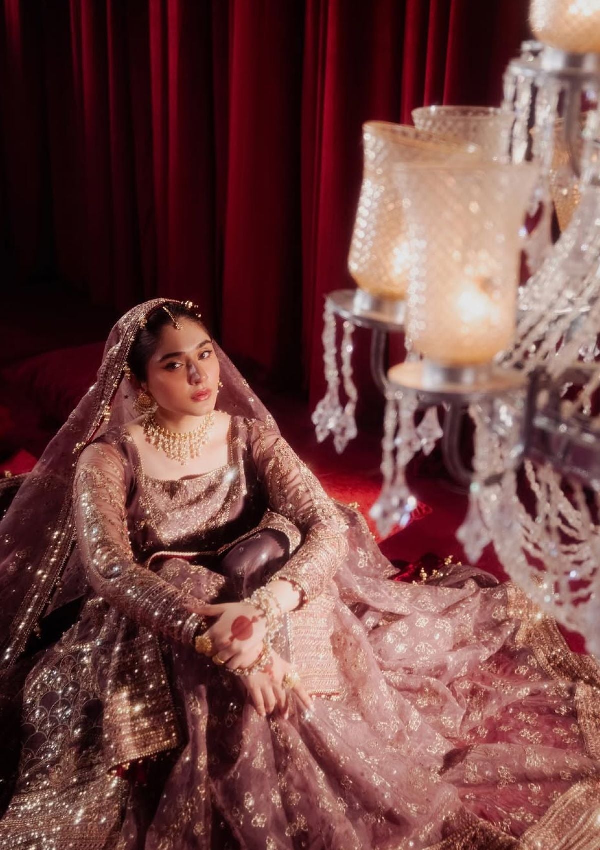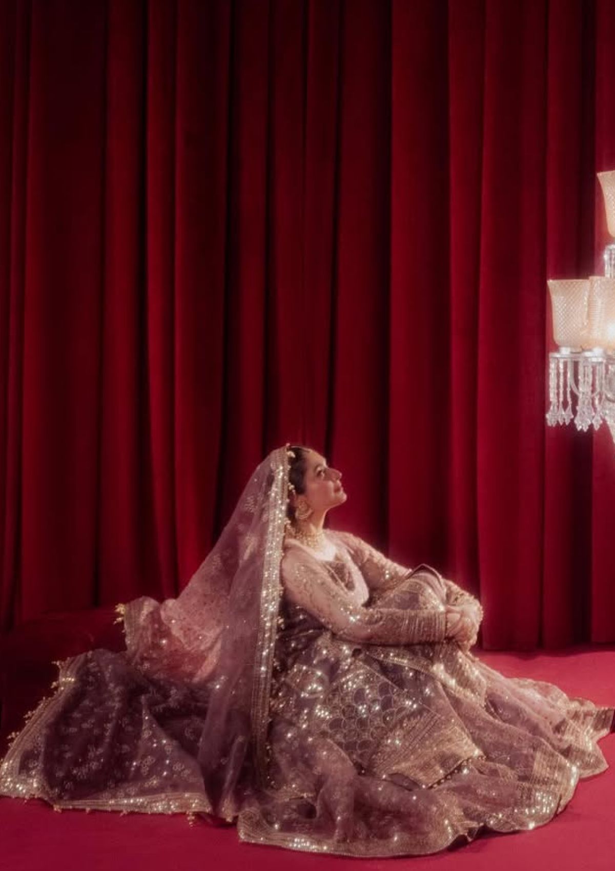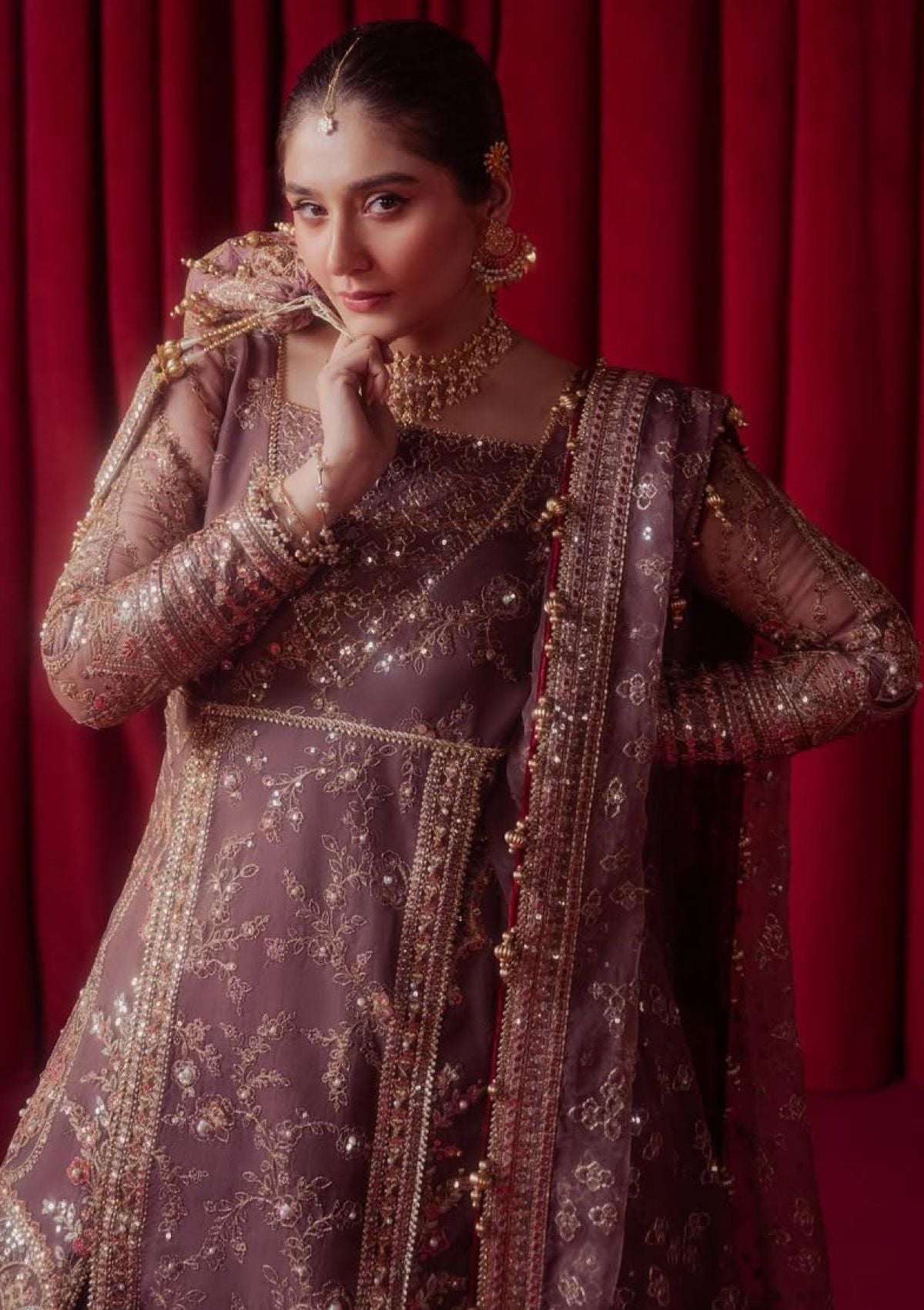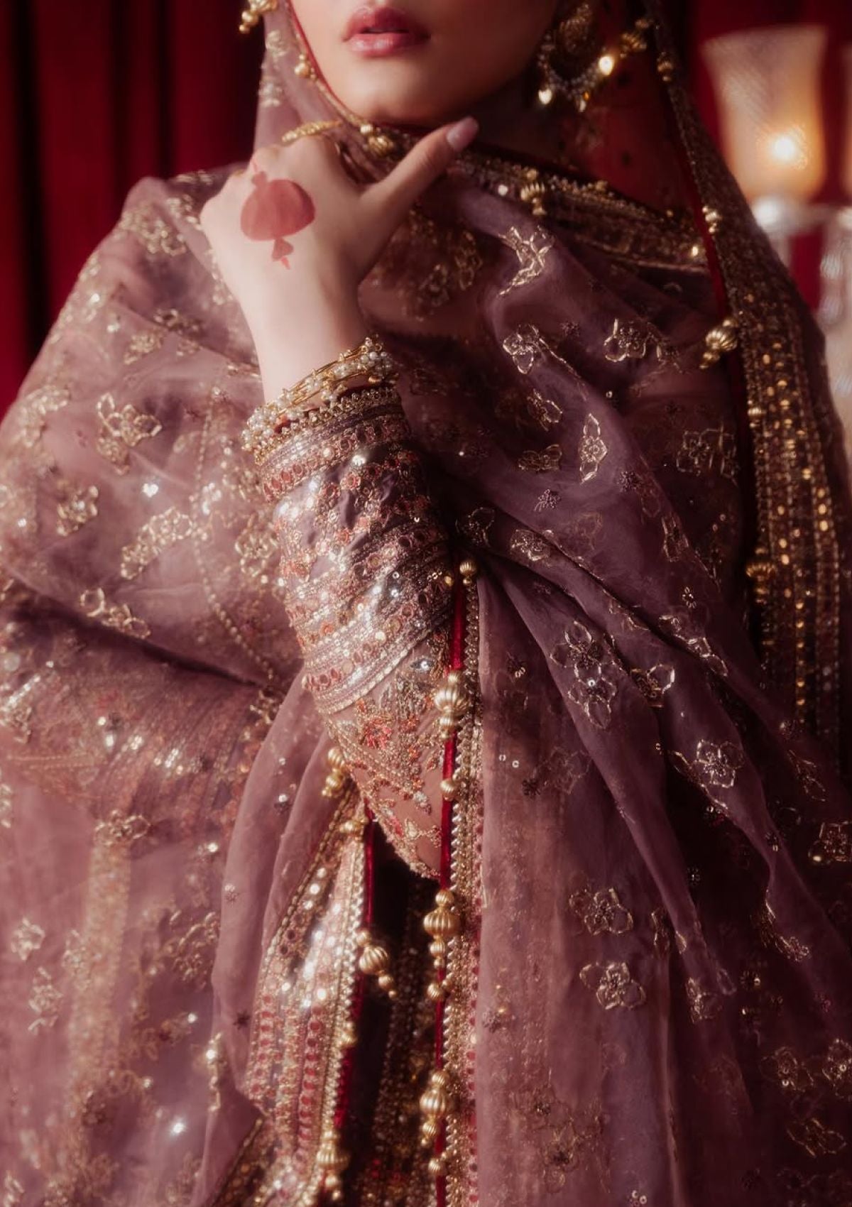 Step into the allure of "Dil Nasheen" from MNR's Dur-e-Nayab 2024 unstitched collection. This lilac ensemble, with its refined V-neckline and double front slits, showcases intricate thread and tilla embroidery, delicate panni details, and a hint of sparkle from hand-applied pearls and sequins. The richly adorned hem adds an opulent touch, while the floral pattern throughout creates a sense of harmony. Paired with an embroidered lehenga and a soft organza dupatta featuring a four-sided border and delicate motifs, making"Dilnashin" the epitome of romantic elegance.