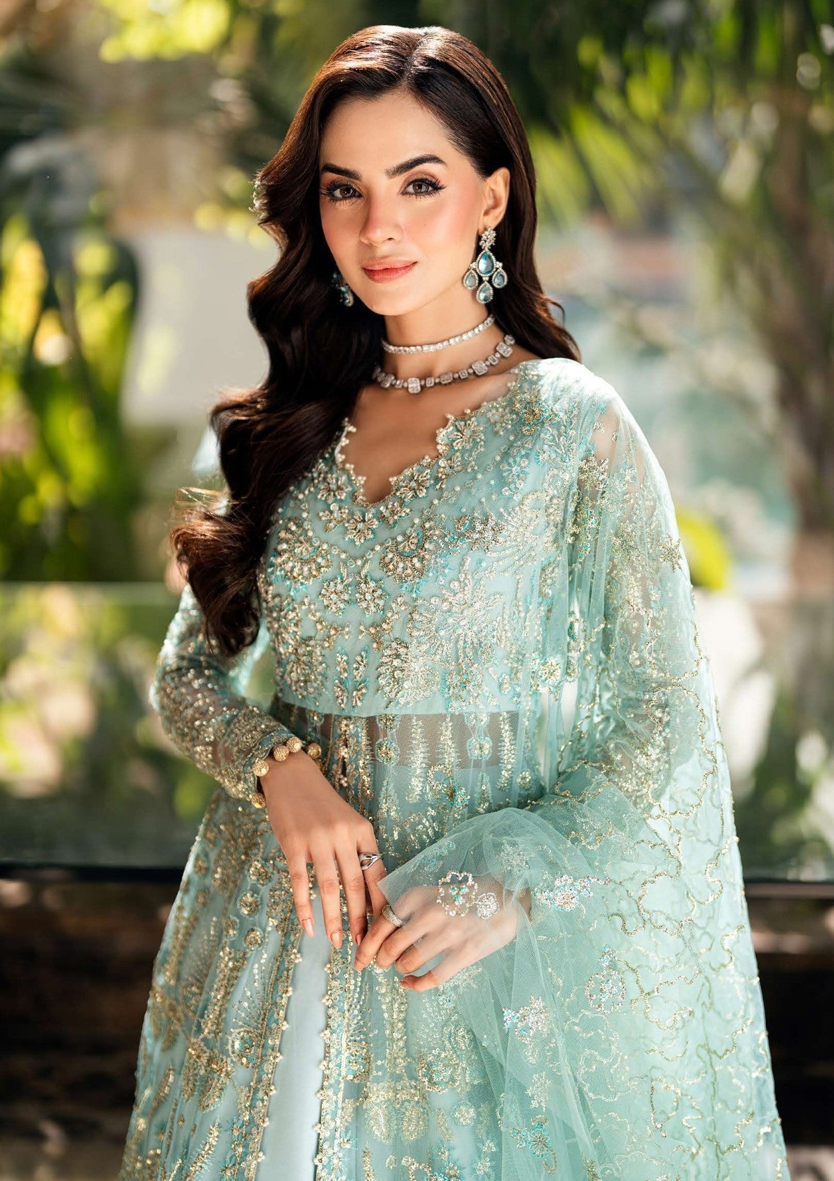 Embroidered, sequined & hand embellished Front yoke (Net)