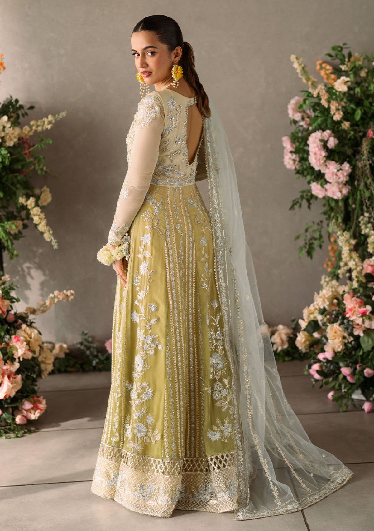 - Embroidered and sequinned front back yoke patti (organza)