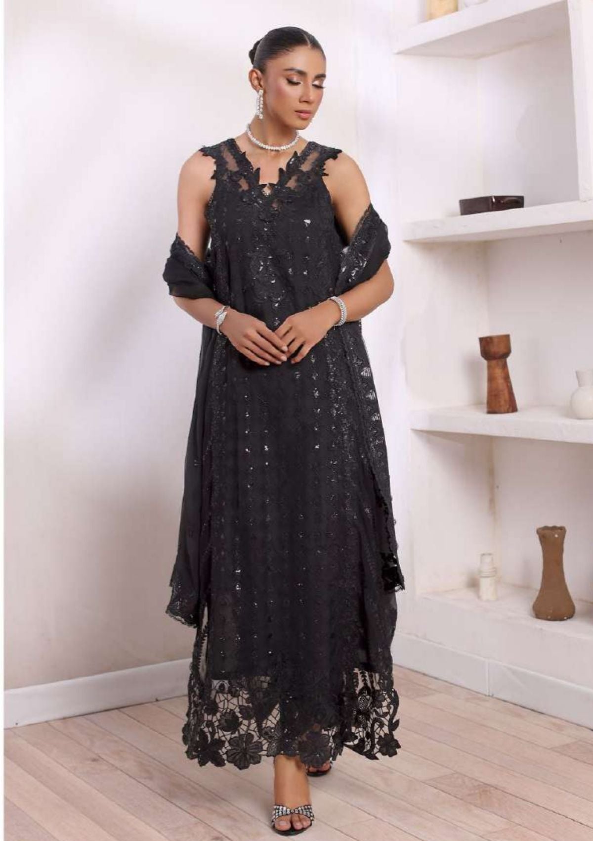 - Sequin embroidered scalloped dupatta