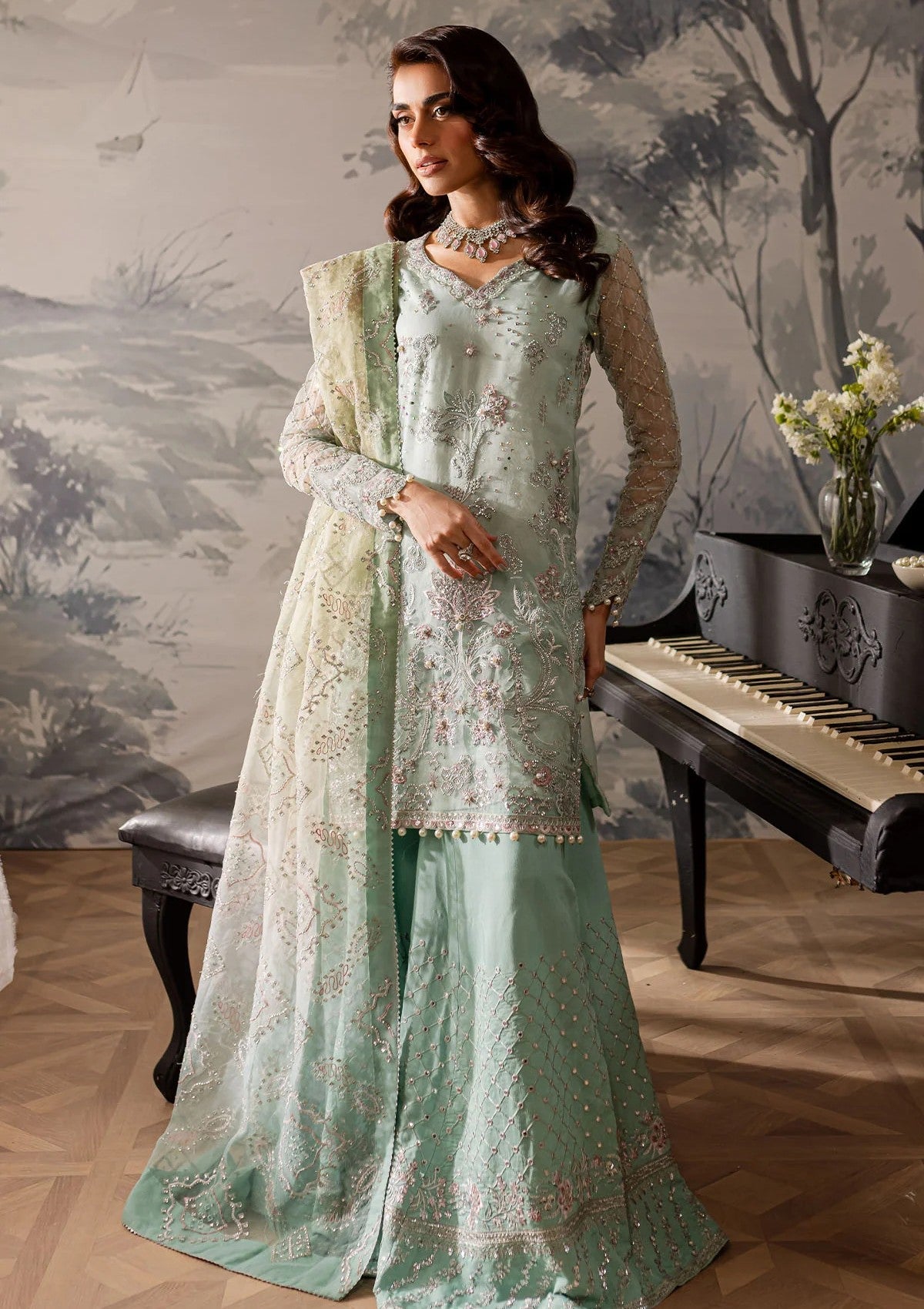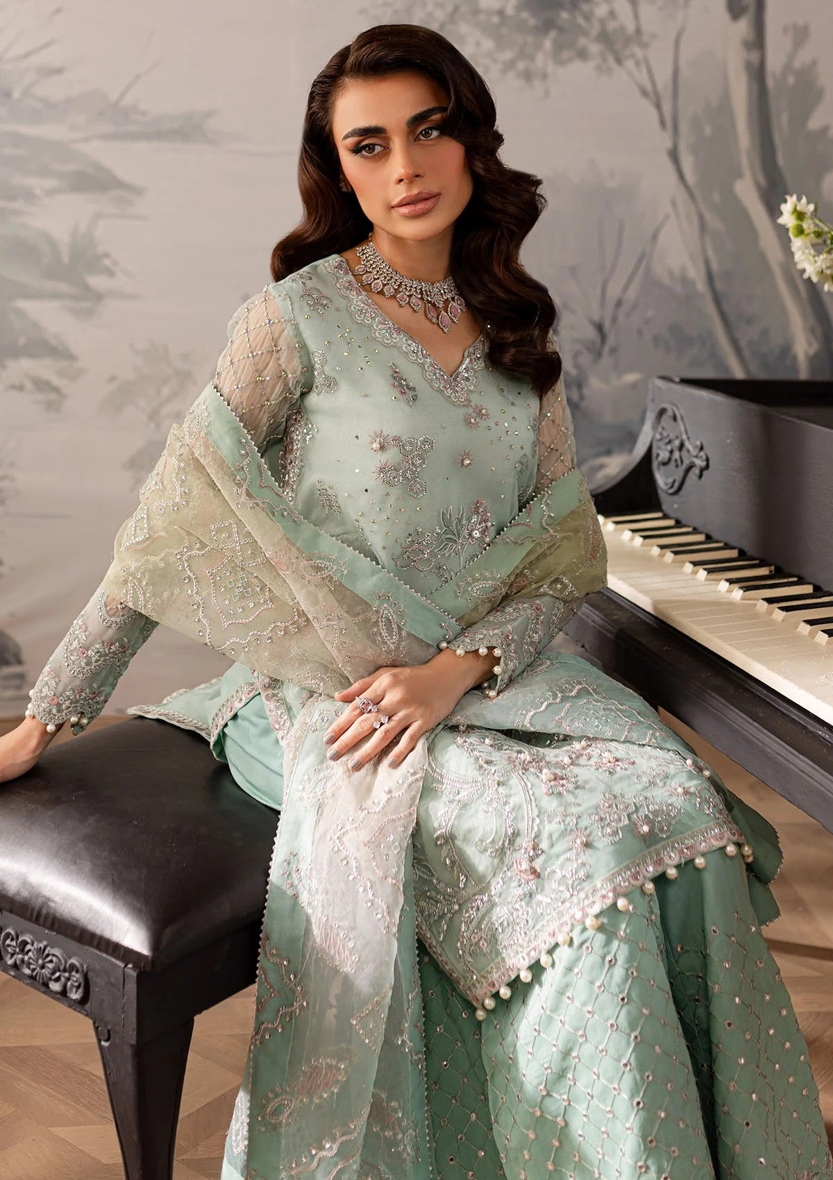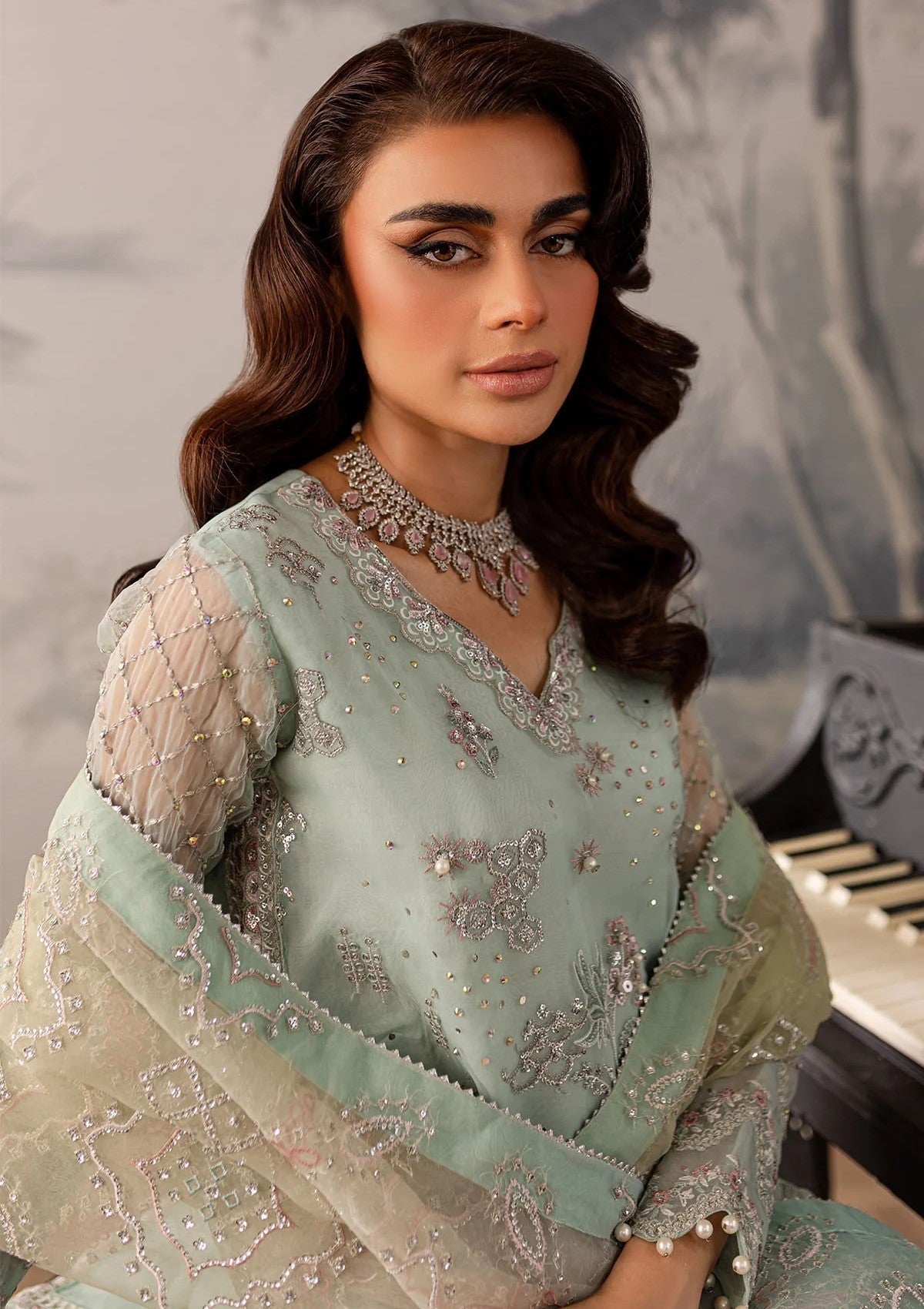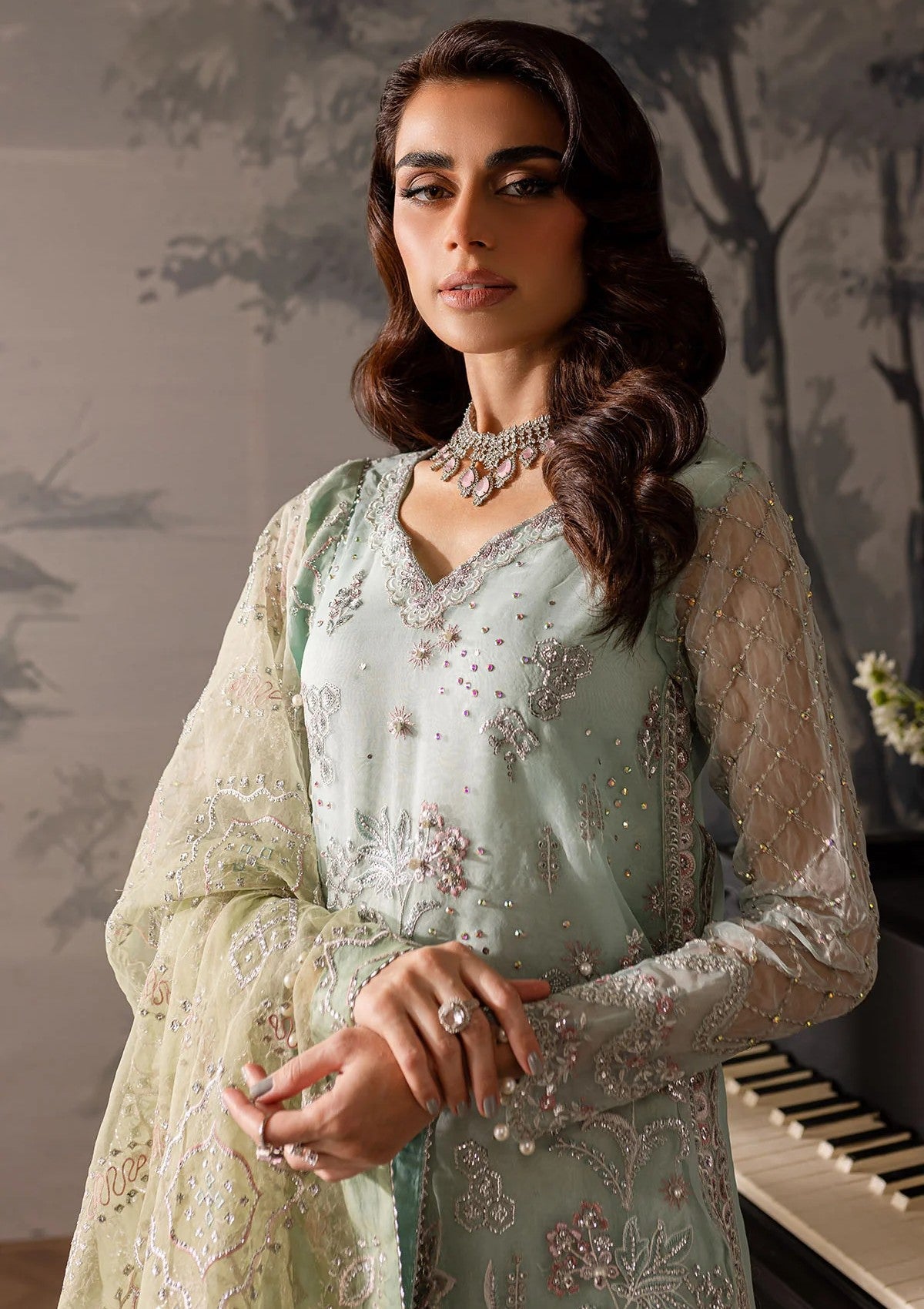 - Embroidered Organza Front With Hand Embellishment