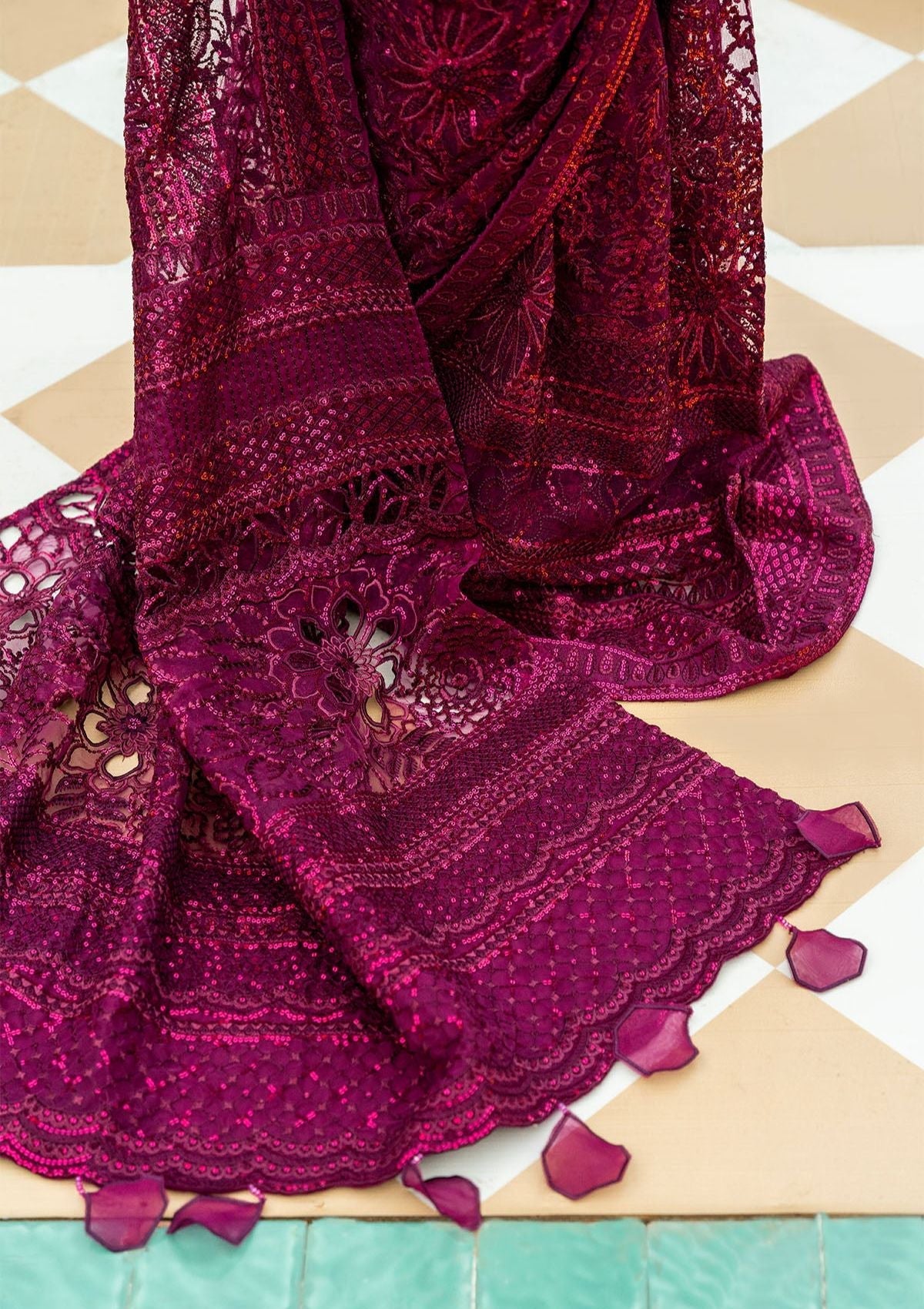 - Embroidered Net Dupatta