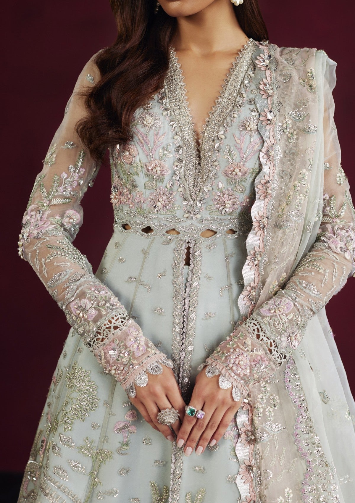 - Immerse yourself in the realm of Kyla, a distinctive ensemble that brings the beauty of marine life to life on a soft pastel aqua blue canvas. Heavy embroidery panels showcase delicate multi-color embroidery, adorned with the subtle glimmer of sequins and the whimsical touch of tilla. The organza shirt features intricate hand embellishments with beads and stones, elevating it to a true masterpiece of artistry. Every meticulously woven thread narrates a tale of the underwater world.