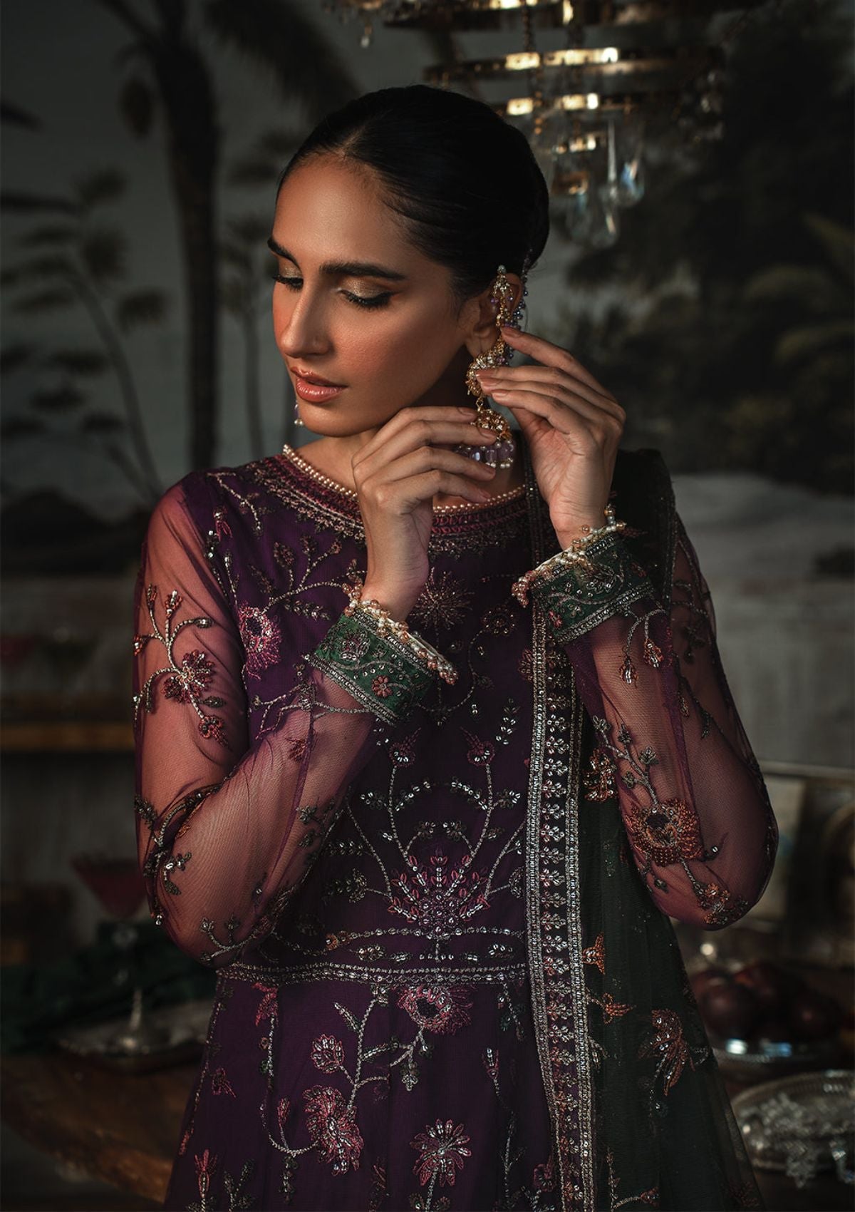 Sleeves:Sequins Embroidered Net