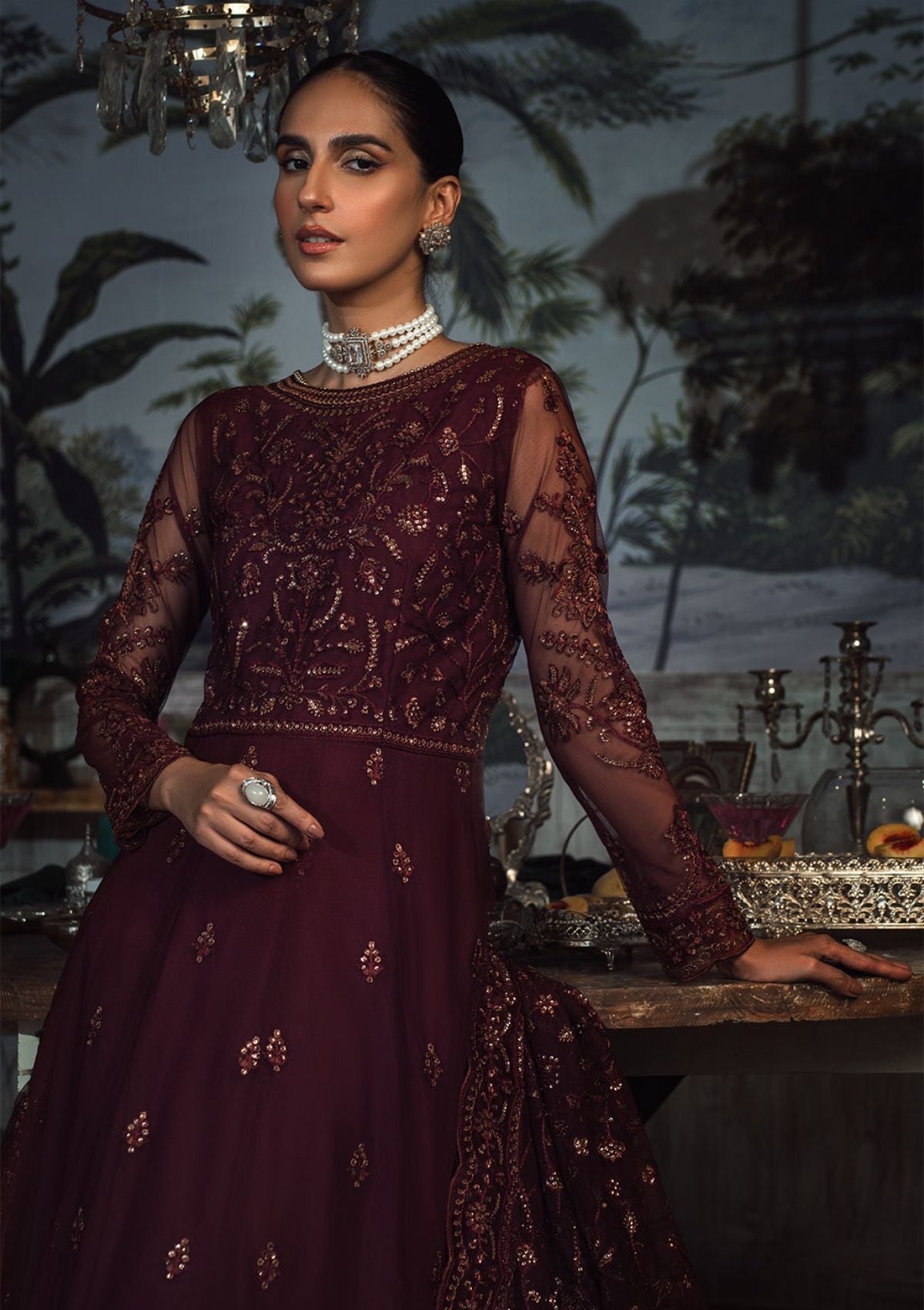Sleeves:Sequins Embroidered Net