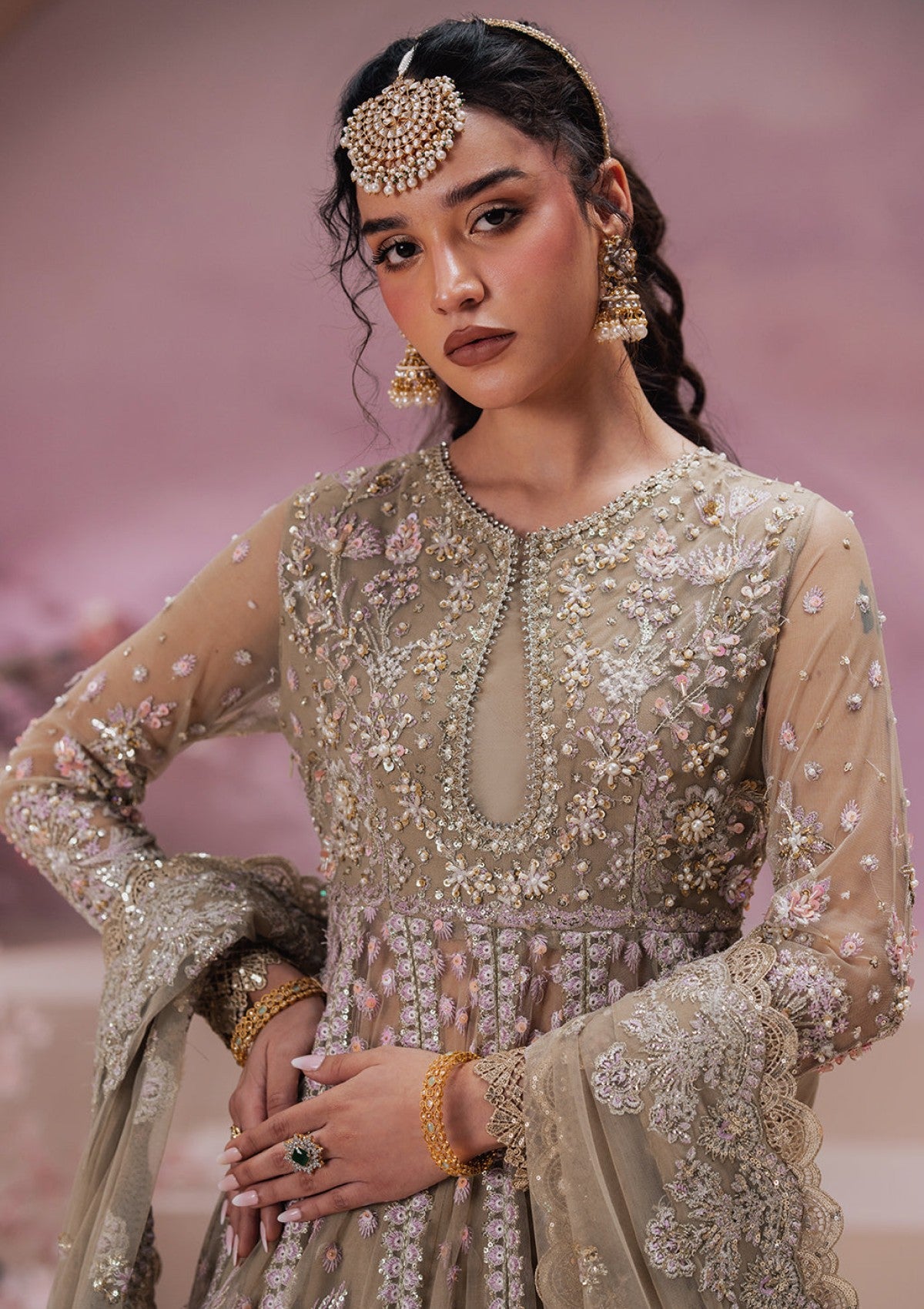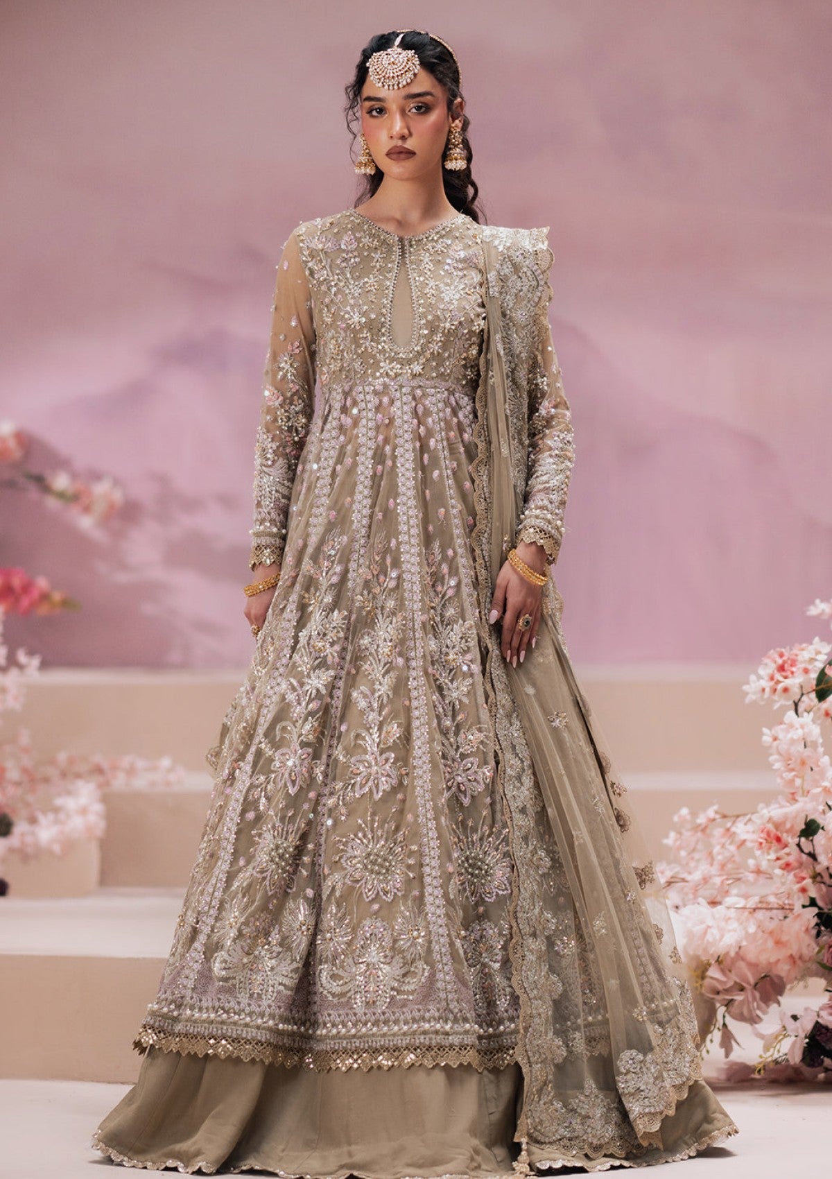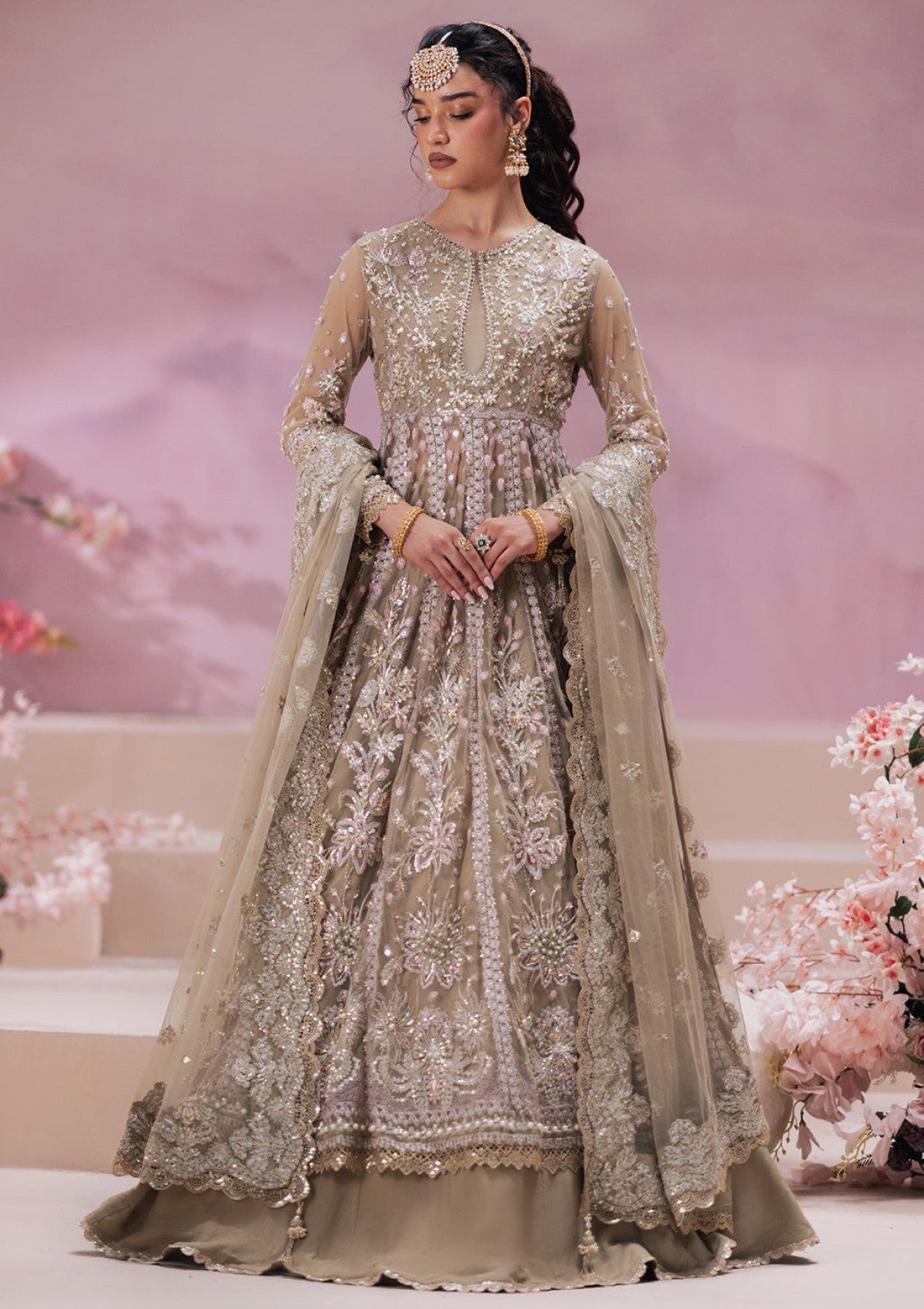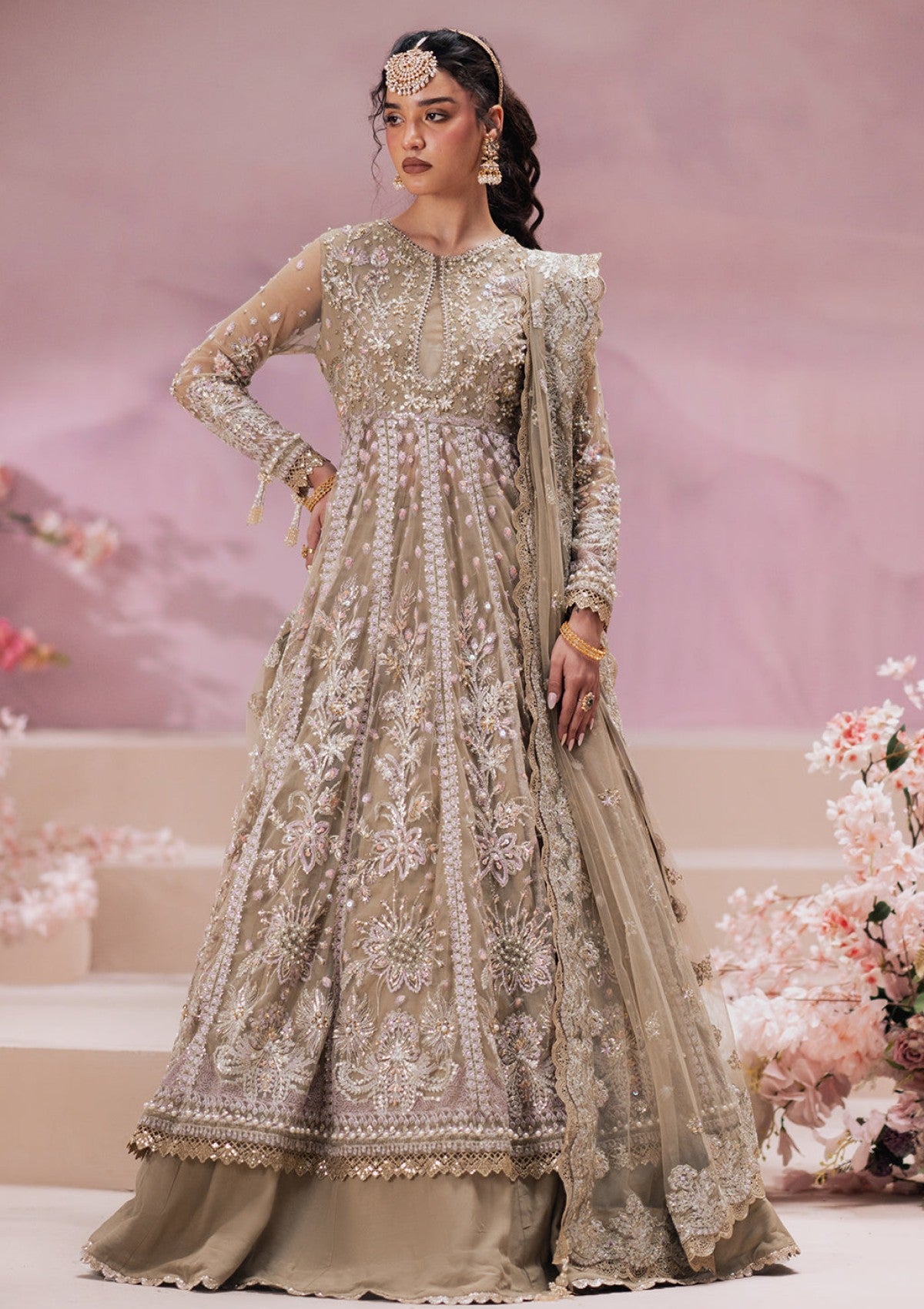 - Embroidered net sleeves hand embellished (26 inch))
