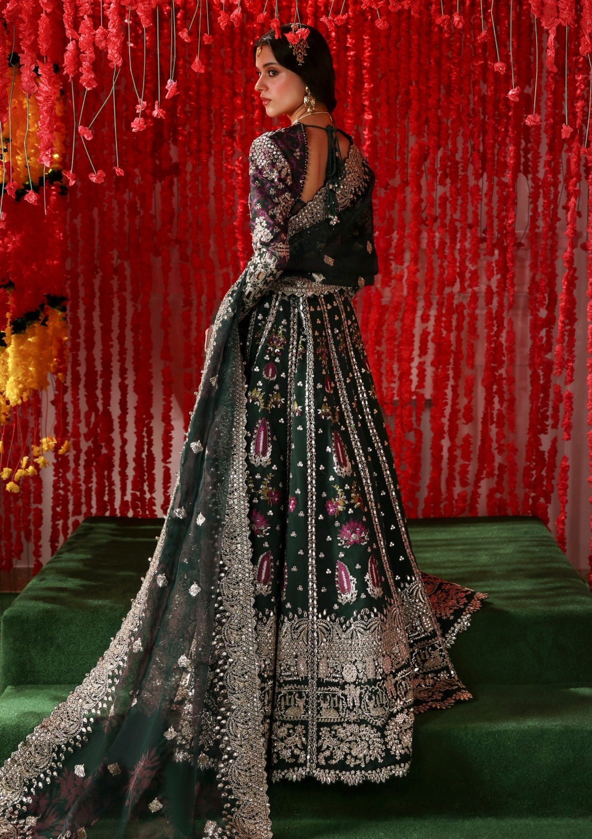 - DARK GREEN ORGANZA EMBROIDERED DUPATTA PALLU BORDER (2.60 Meter)