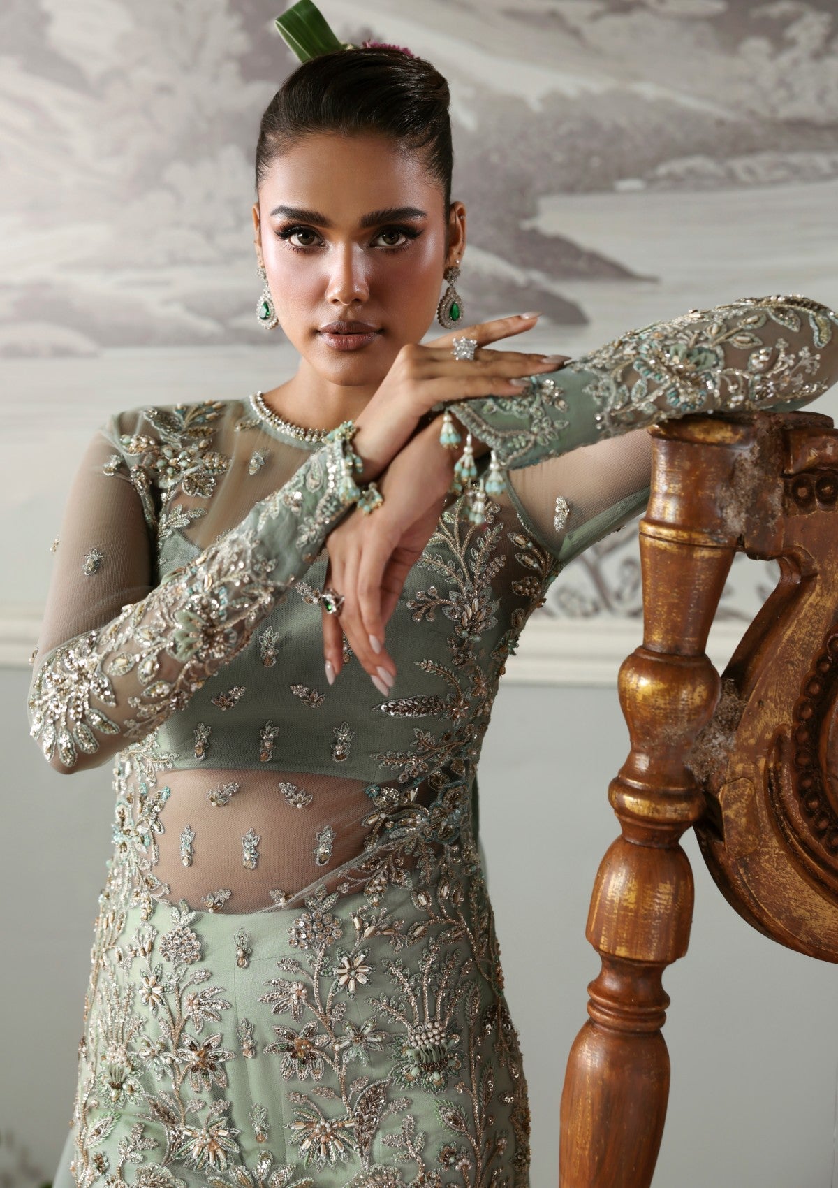 - Net Embroidered Hand Embellished Sleeves 26"