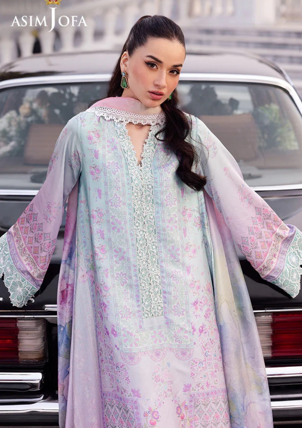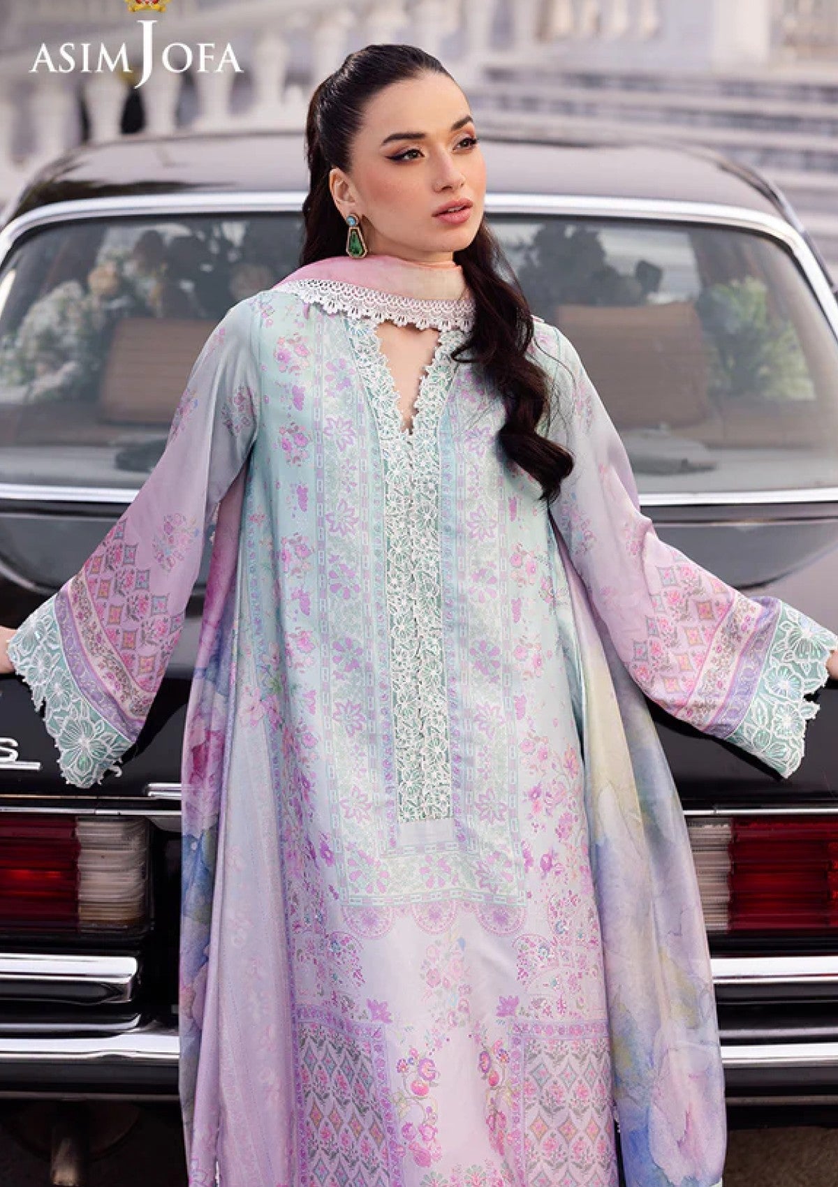 Delight in the serene beauty of this mint lilac ensemble, where gorgeous floral prints flourish like a meadow, painted in soft pastels. The digitally printed shirt showcases a mesmerizing ombrÃÂé effect, blending the refreshing hues of mint and lilac in perfect harmony. A beautifully embroidered neckline adds a touch of elegance, infusing the ensemble with fresh vibrance and refined charm, while the embroidered sleeves and borders evoke an air of graceful sophistication. Finished with a digitally printed silk dupatta that flows like a soft spring breeze, this outfit is a harmonious choice for both everyday elegance and formal occasions.