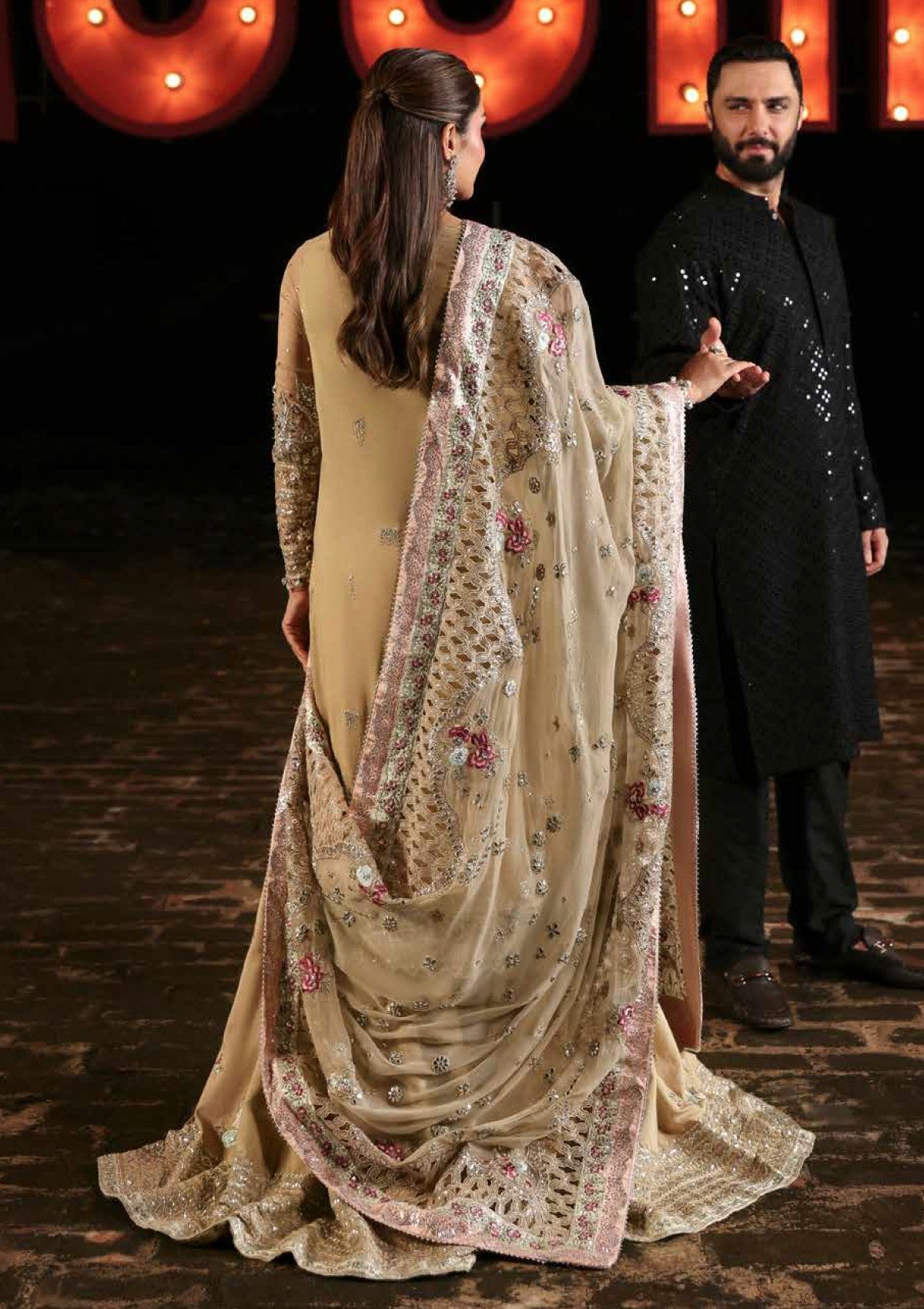 - Embroidered And Hand Embellished Chiffon Sleeves