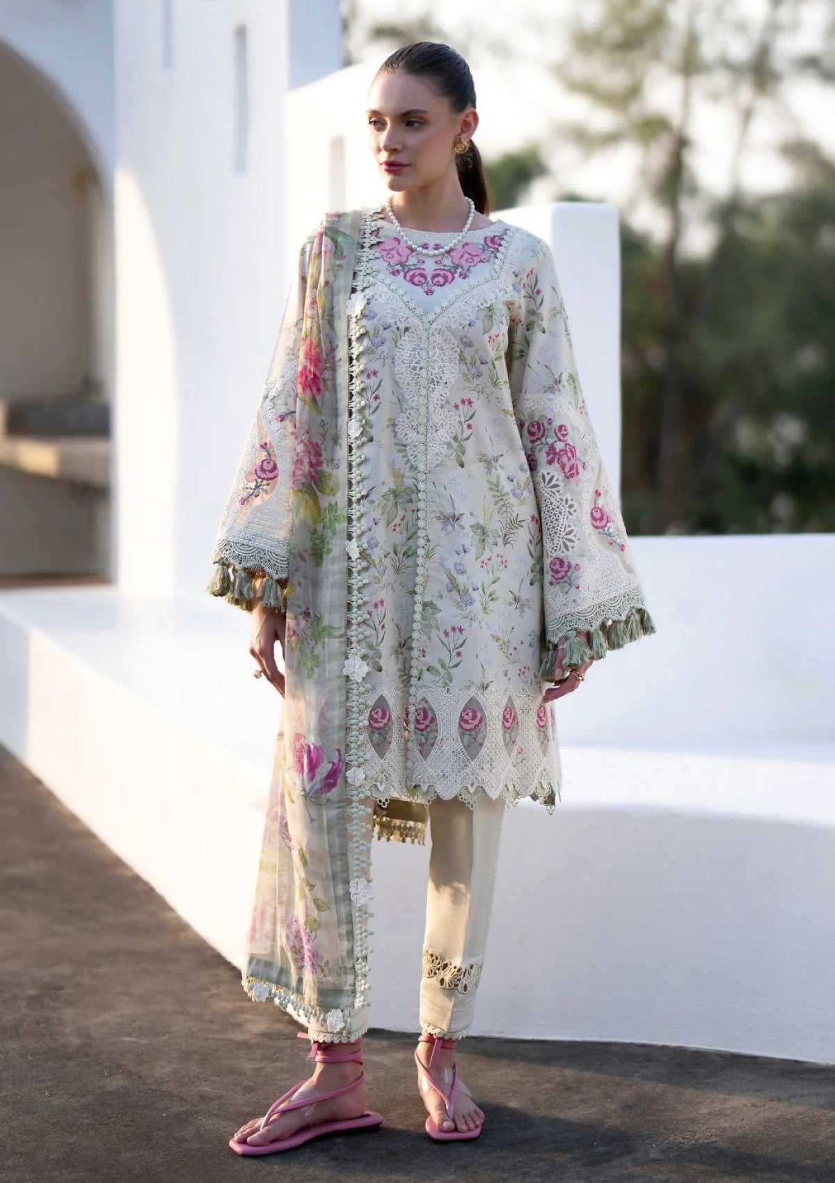 Get ready to fall in love with pastels! âÃÂàintroducing Aleesia! ðÃÂÃÂø This pretty powder mint base, blooming with pastel colored floral charm, is simply irresistible. The cross-stitched embroidery that highlights the design? Exquisite! And the neckline with cross-stitch and cutwork embroidery? So uniquely beautiful! Love the daman border that blends cutwork and cross-stitch too! Even the sleeves have a bold cross-stitch border! Complete with dyed pants and a floaty chiffon printed dupatta, Aleesia is your ticket to turning heads with its charming pastel palette and gorgeous cross-stitch details.