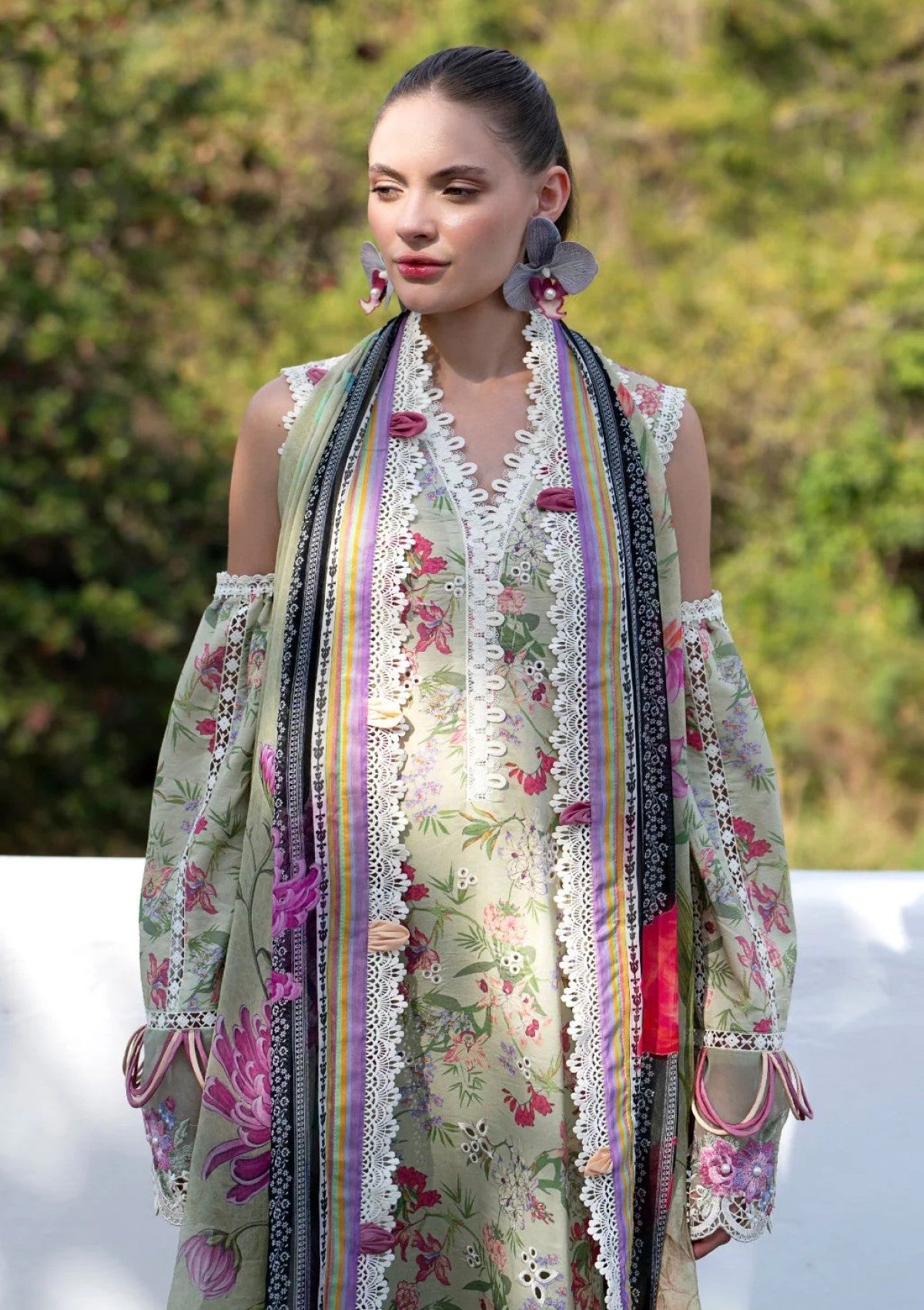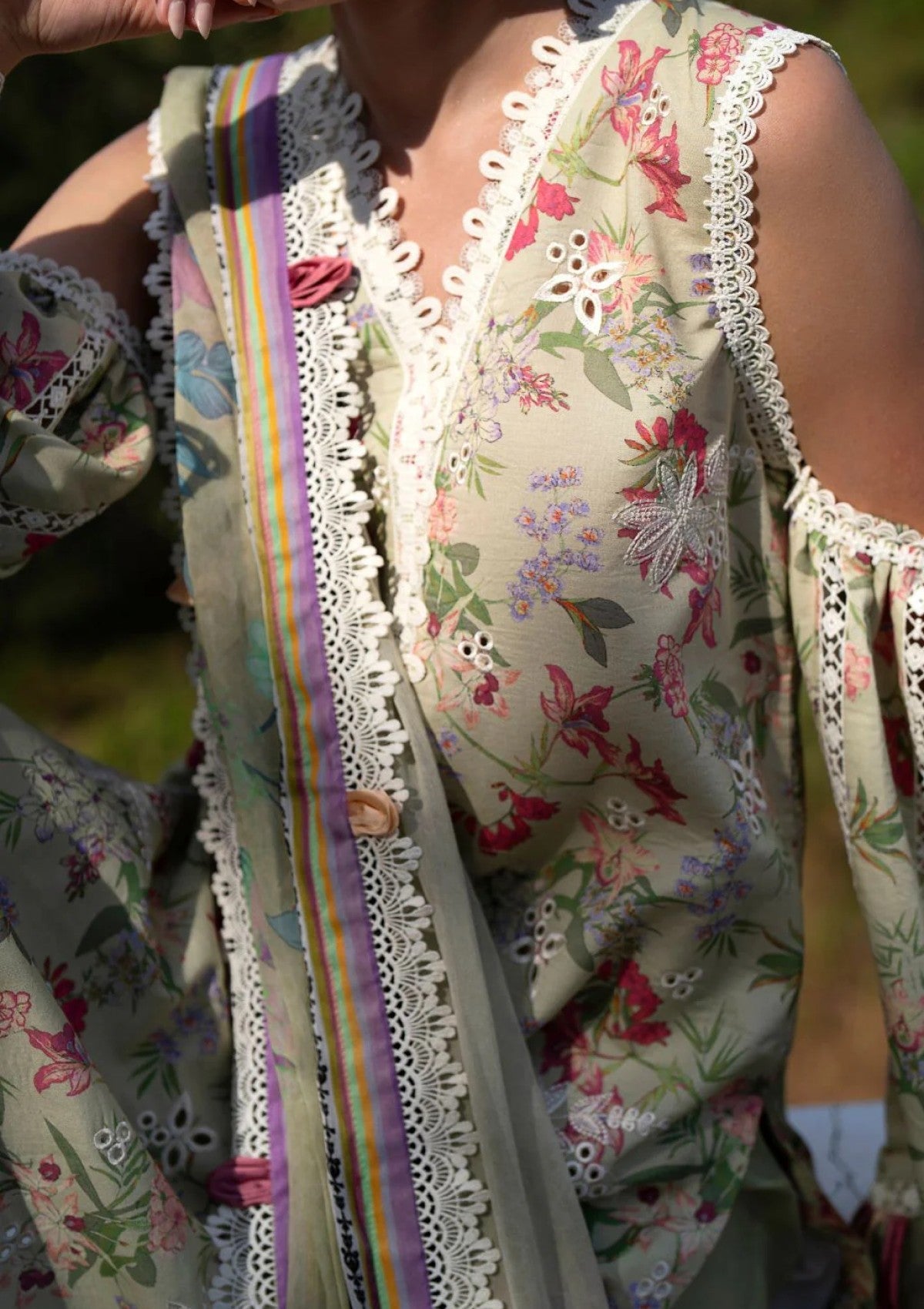 Discover a design that's all about the details âÃÂàintroducing Pink Petal! ðÃÂÃÂø âÃÂàa subtle beige and a vibrant colored section, creating a beautiful focal point. The pistachio printed lawn canvas is exquisitely embroidered with off-white chikankari all over, offering a delicate and classic contrast. The sleeves are finished with a multicolored embroidered border, adding a playful touch of color. Paired with dyed cambric pants and a chiffon printed dupatta for a light and airy feel, Pink Petal is a testament to thoughtful design, where every detail, especially the daman, tells a story of refined style.