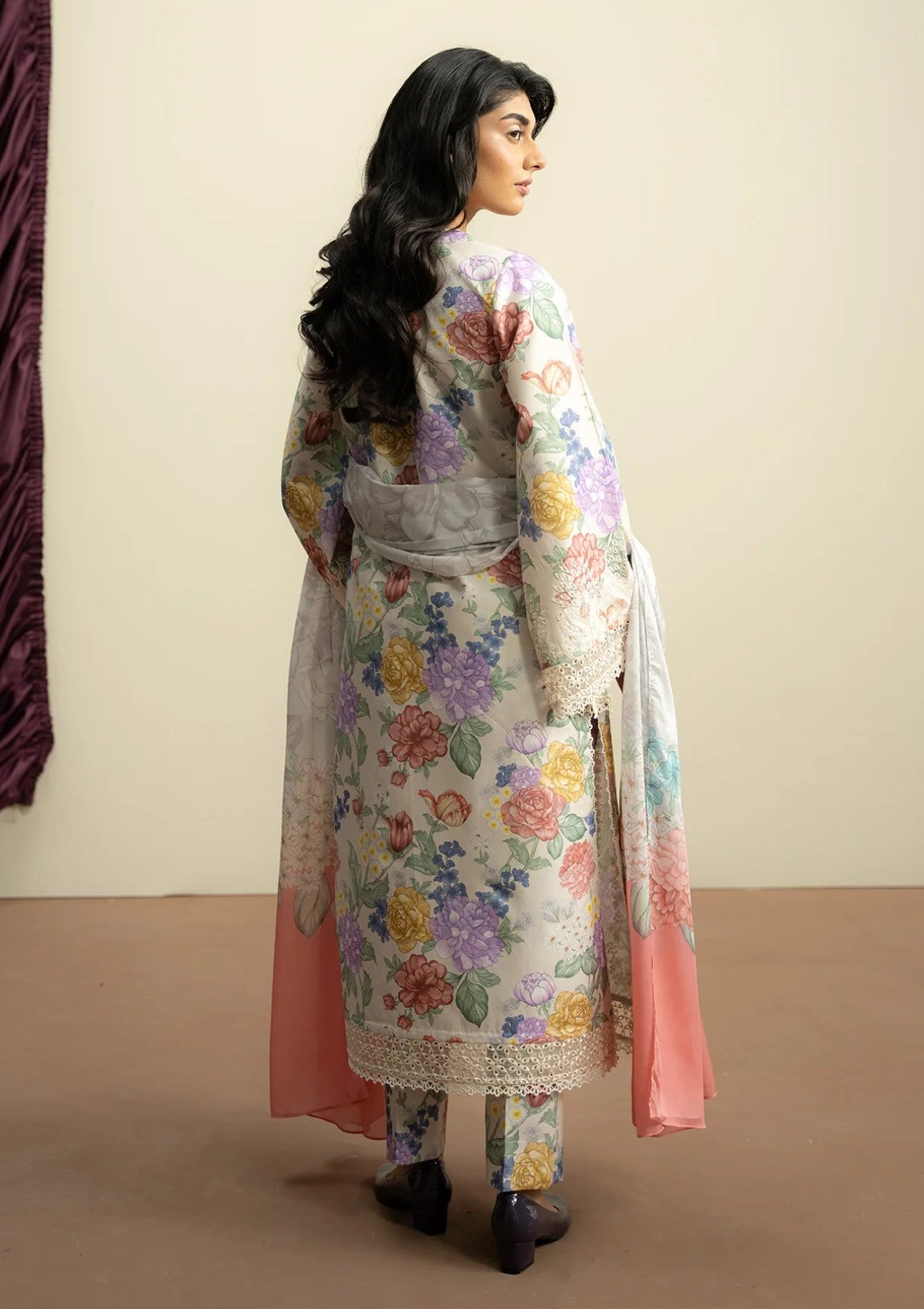 Soft floral prints and a breezy dupatta create a summer look that feels fresh, elegant and effortlessly chic.