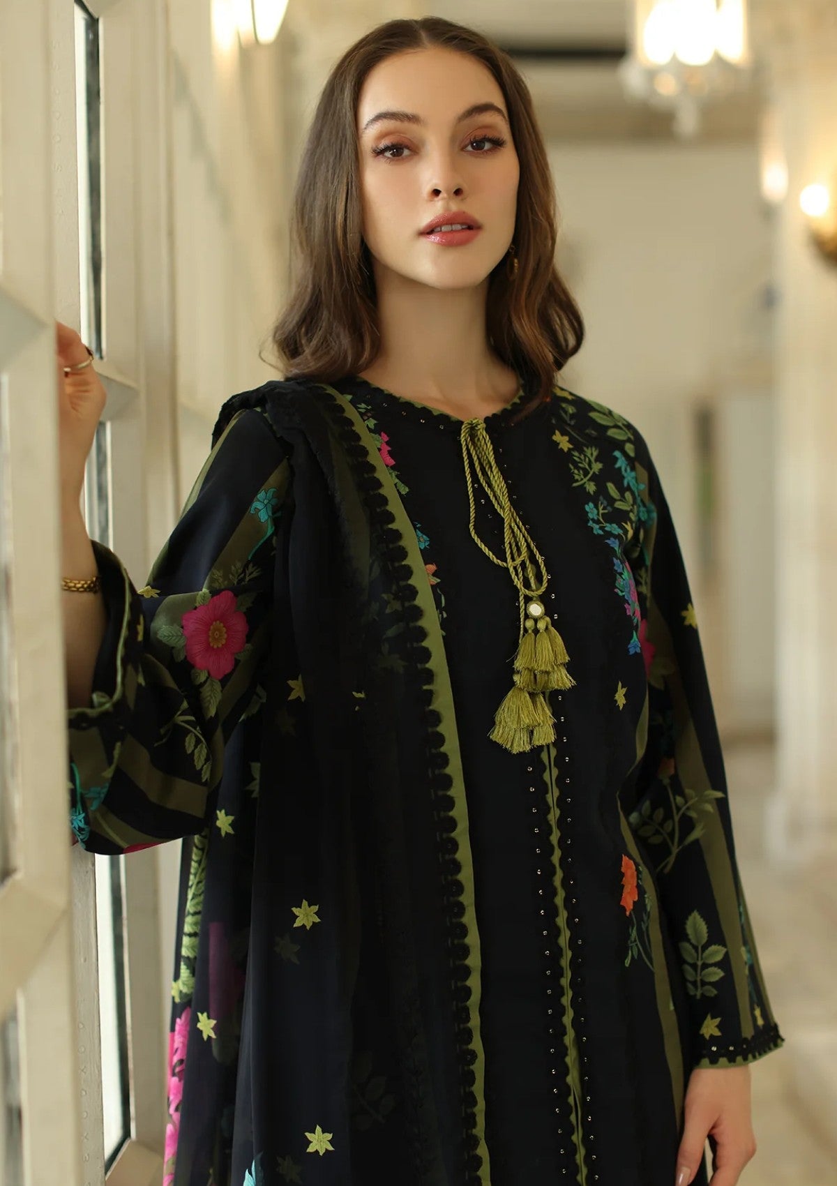 - Embroidery Front Back Sleeves & Trouser and Dupatta Pallu Patti 9 Meter