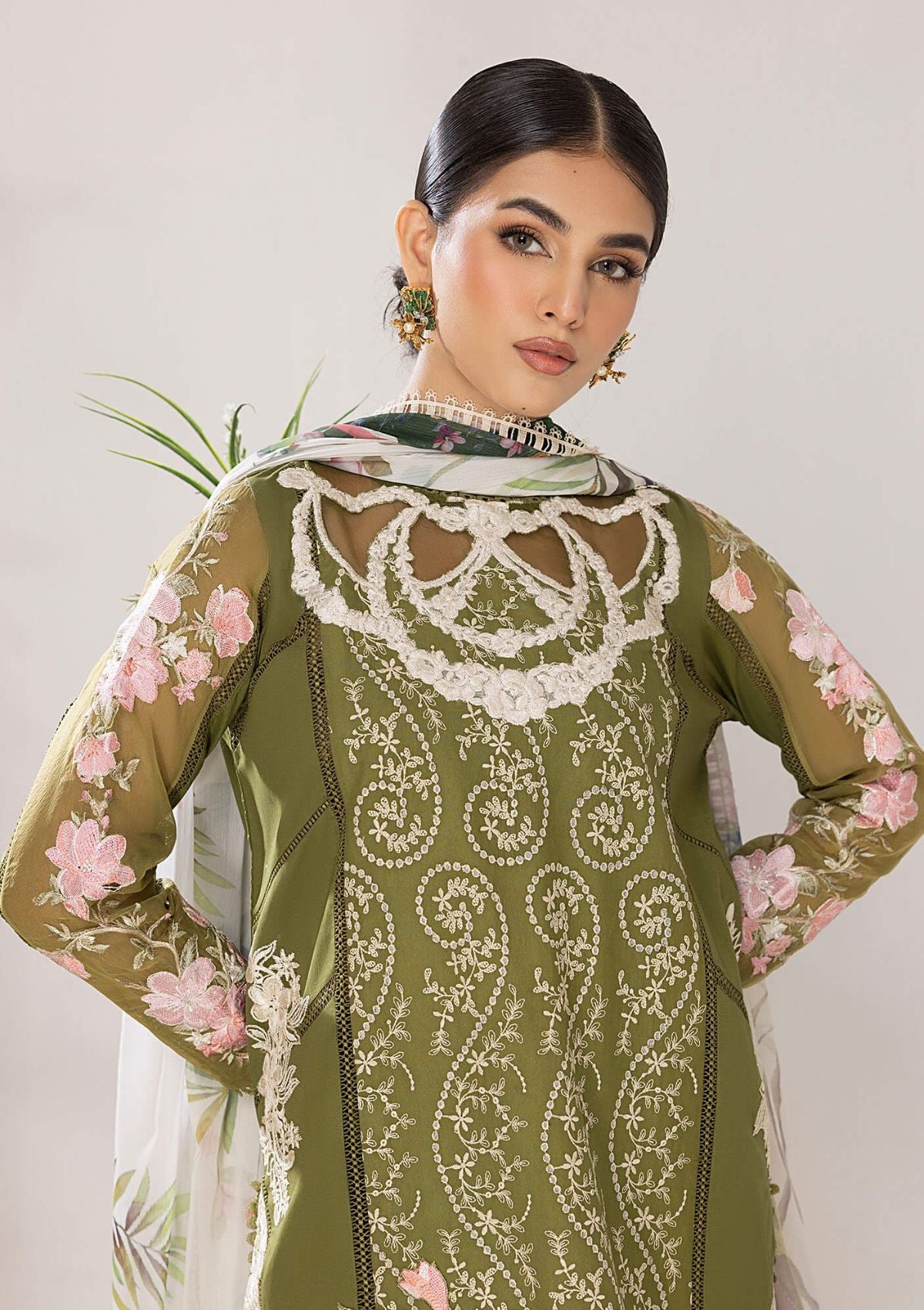 Lawn Collection - Asifa & Nabeel - Aleyna - V02 - OLIVE (ALV-10)