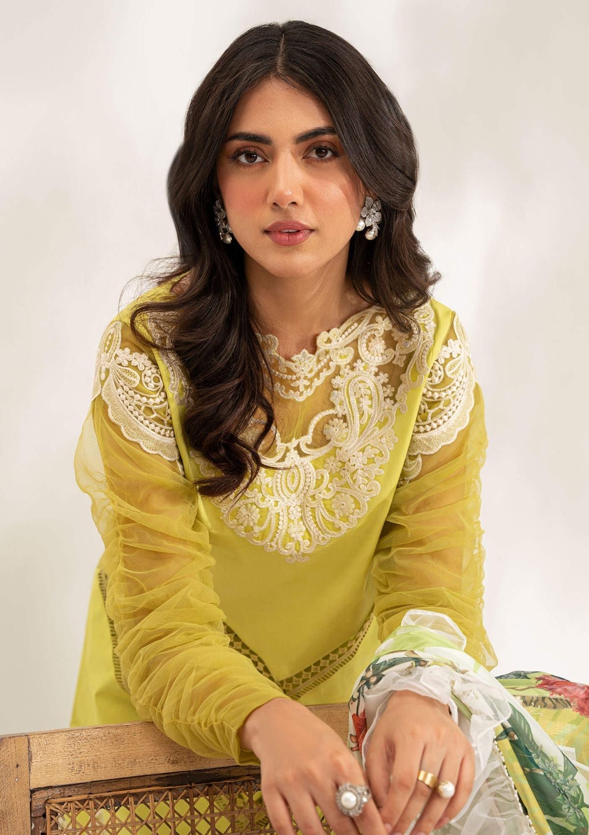 - Embroidered daman border for front on organza.
