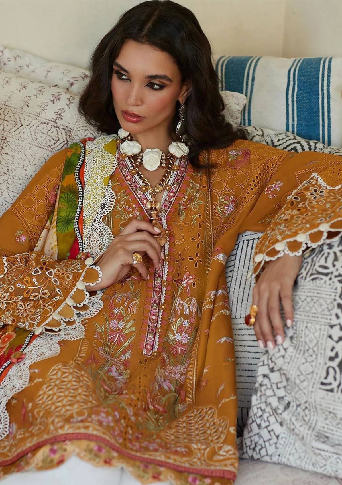 - Embroidered Front Left Panel (Lawn) Mustard1 Piece