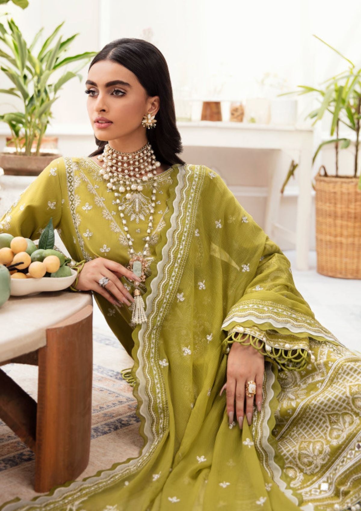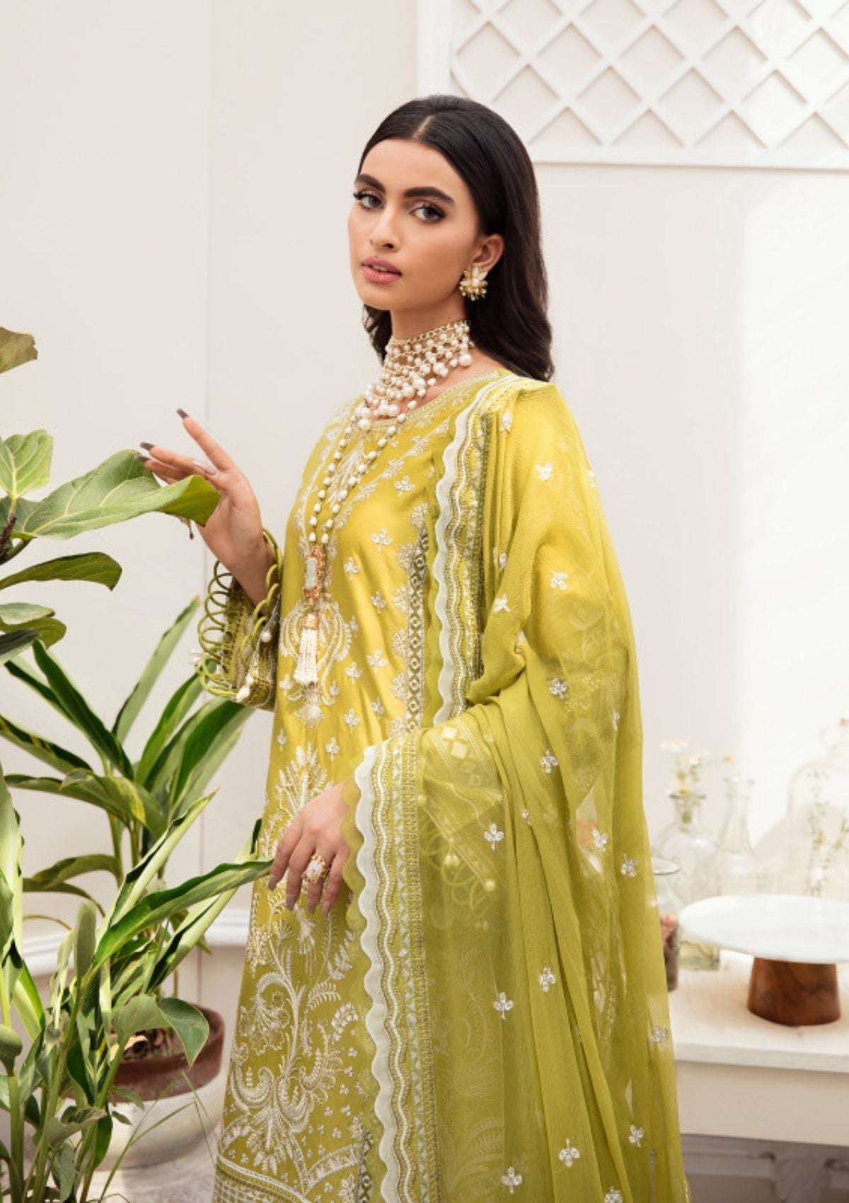 - Panni-embroidered & sequinned ribbed lawn border for the front (B)