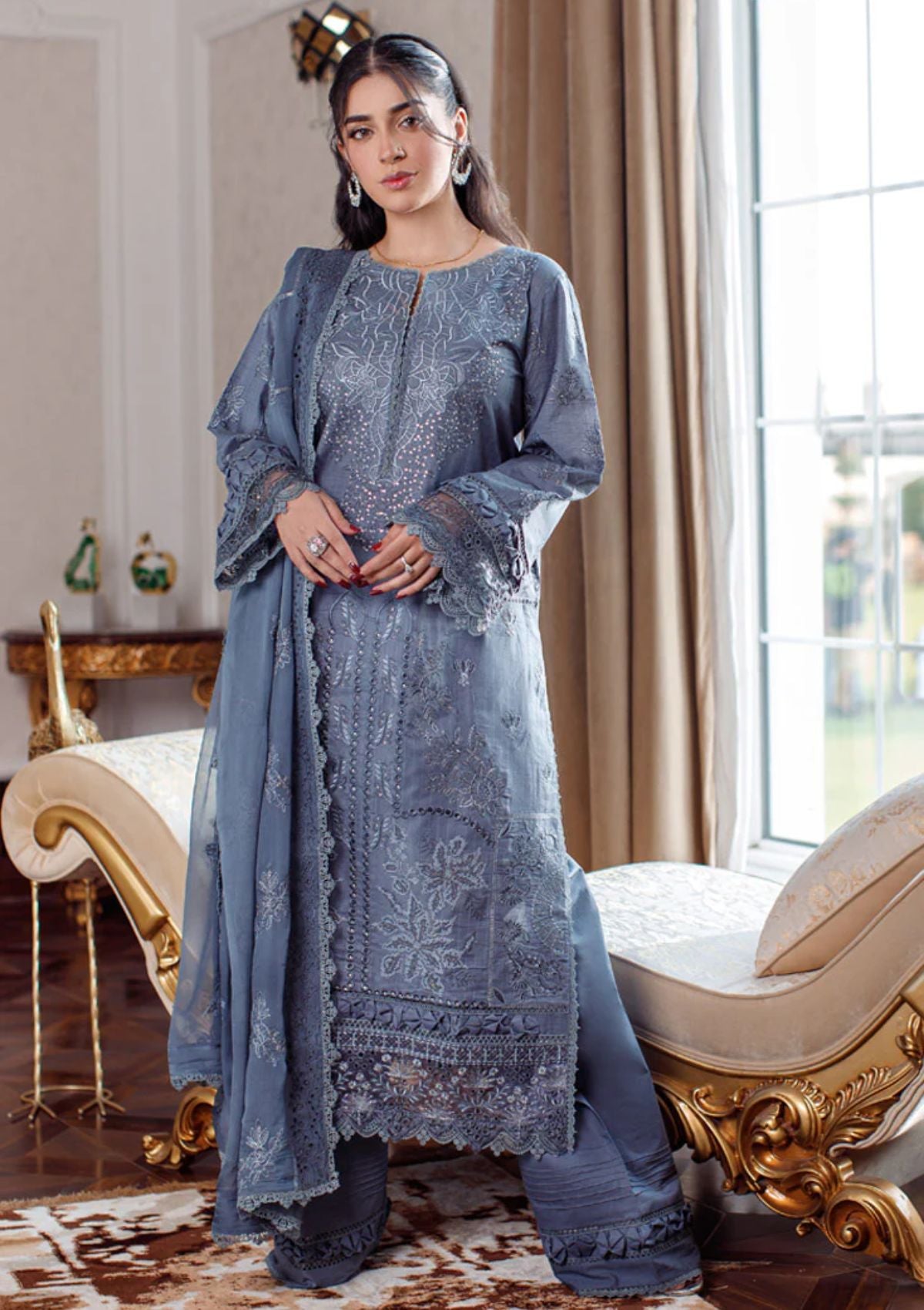 DYED LAWN SEQUINS EMBROIDERED SLEEVE