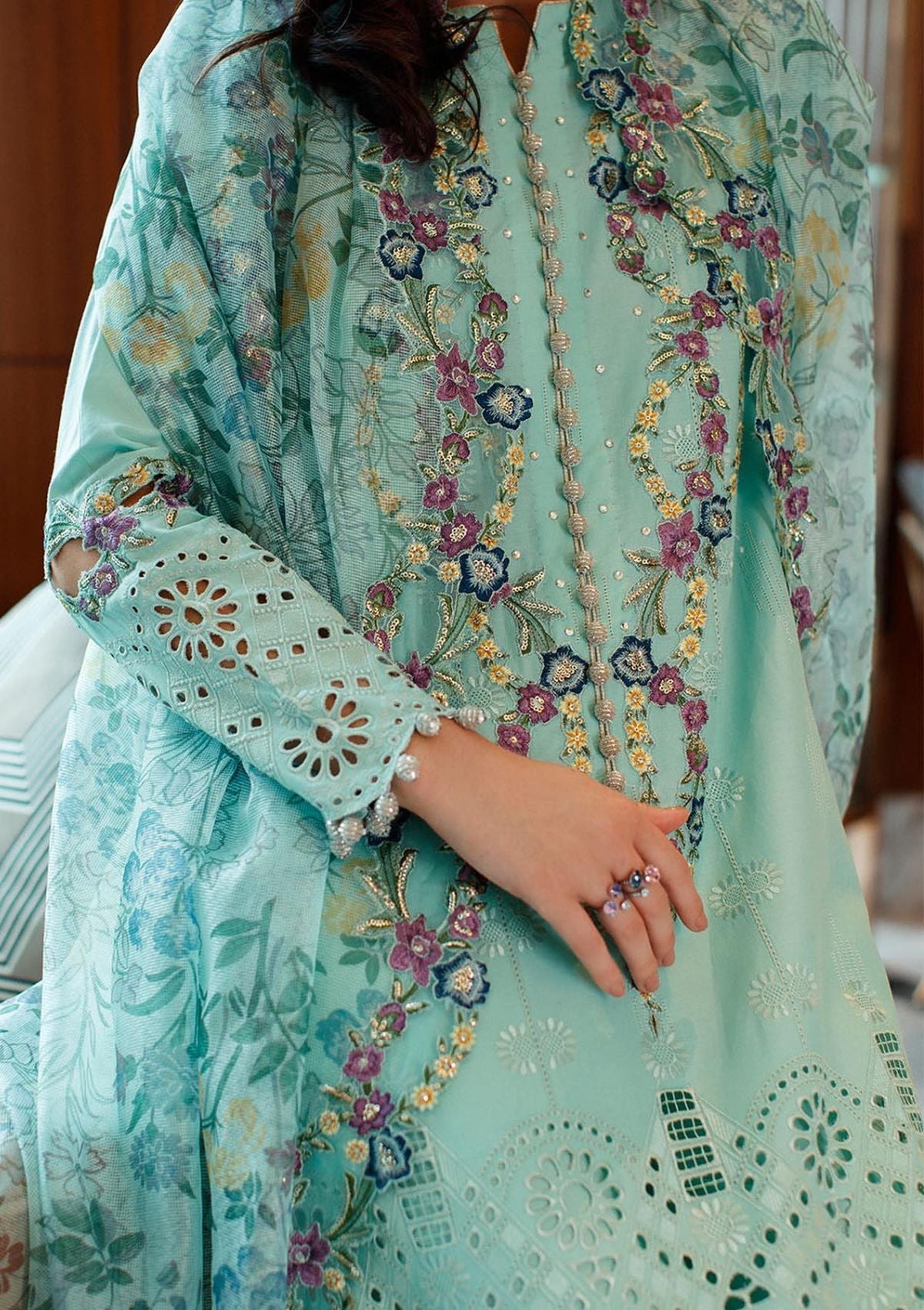 - - Embroidered lawn back and sleeves