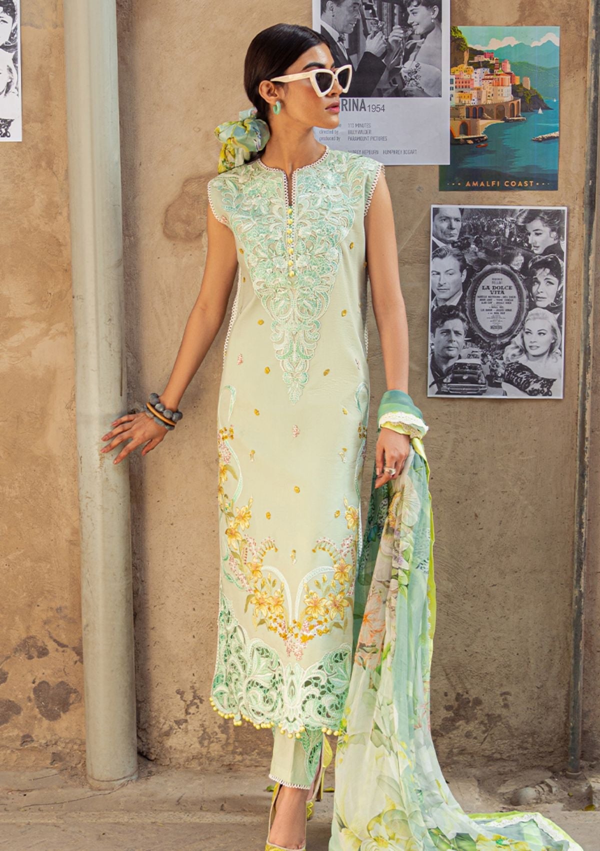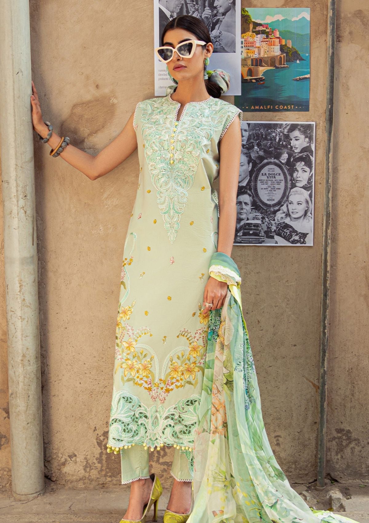 - Embroidered lawn front