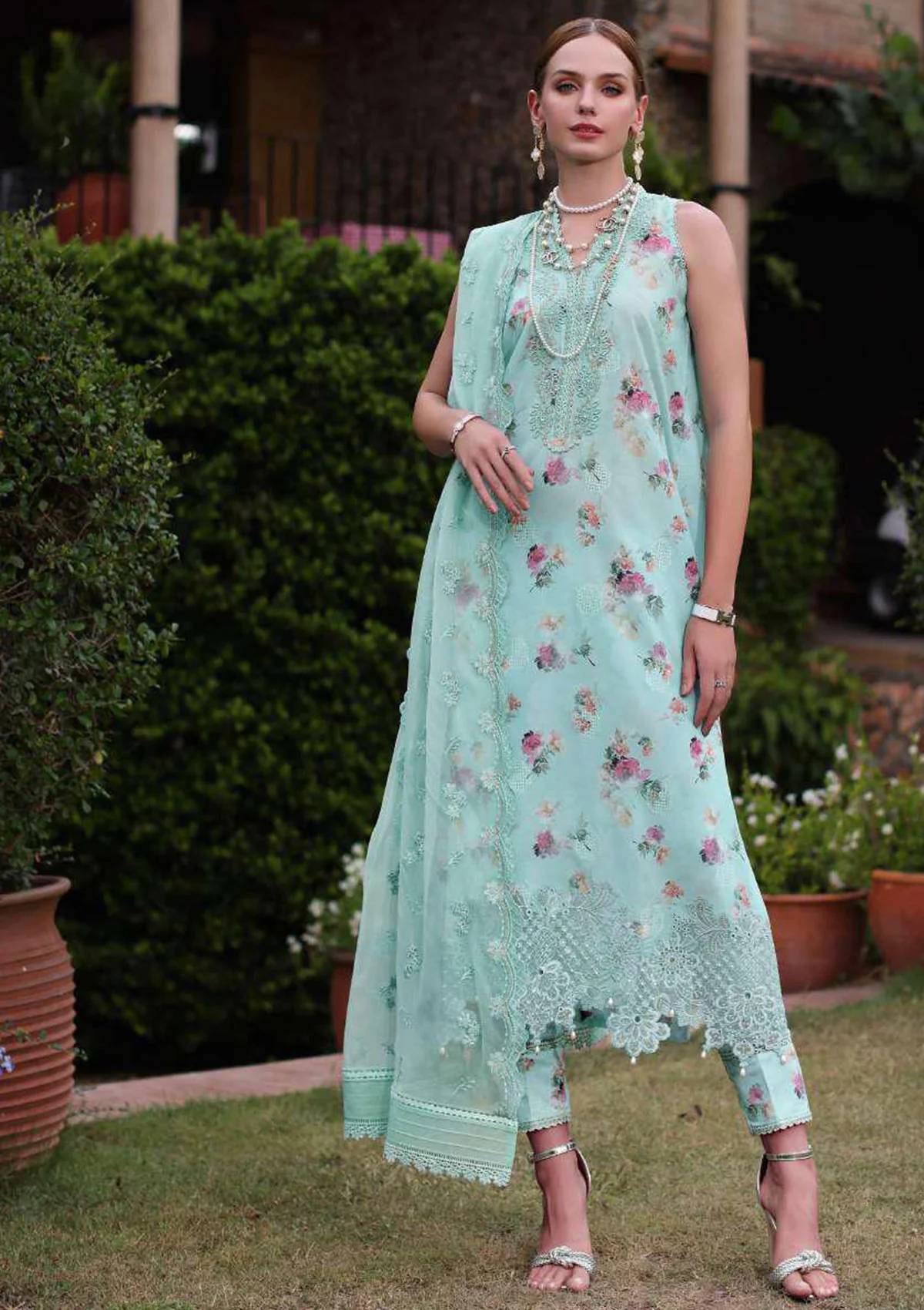 Digital printed embroidered lawn