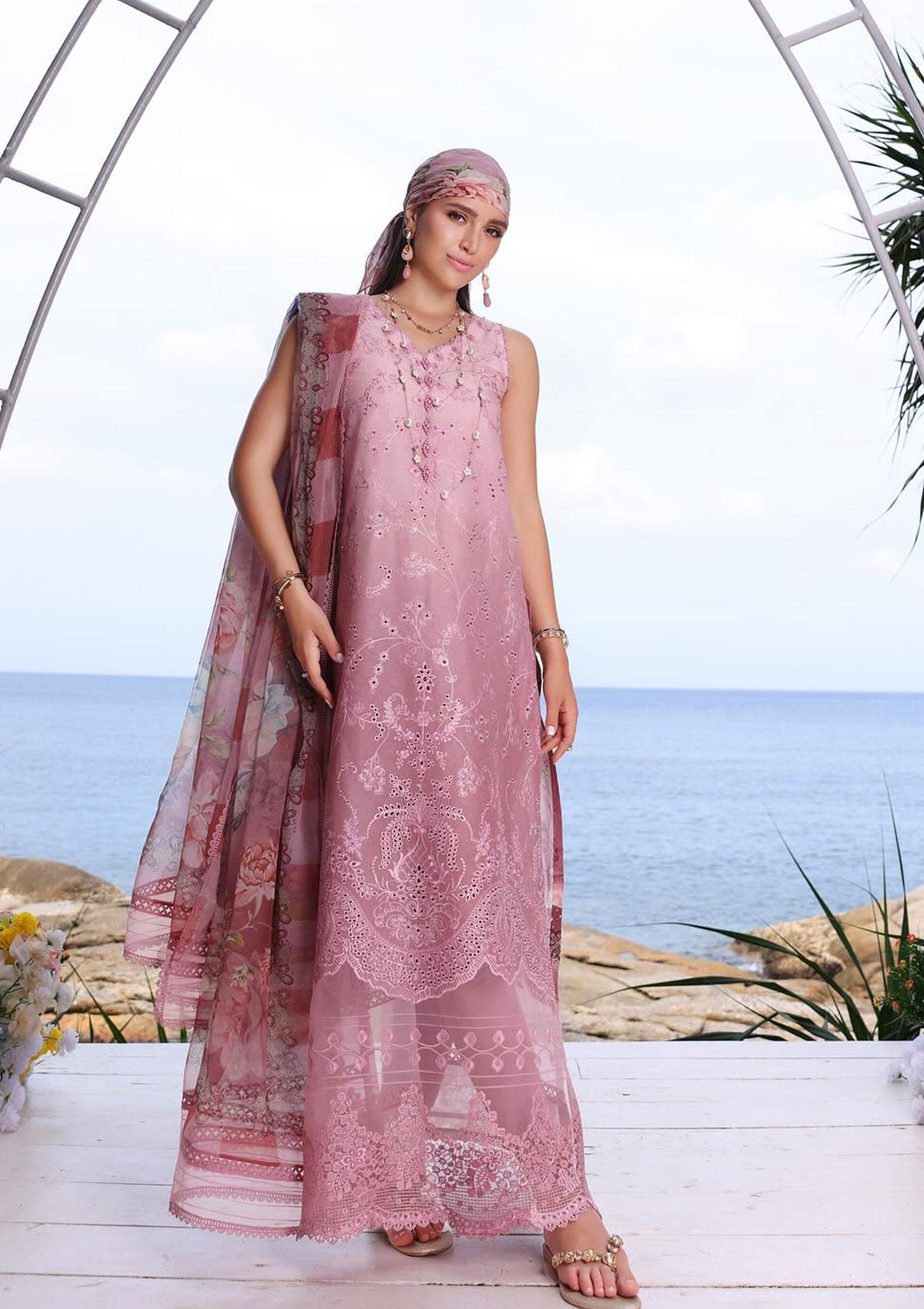 - Digital printed ombre schiffli: embroidered lawn front