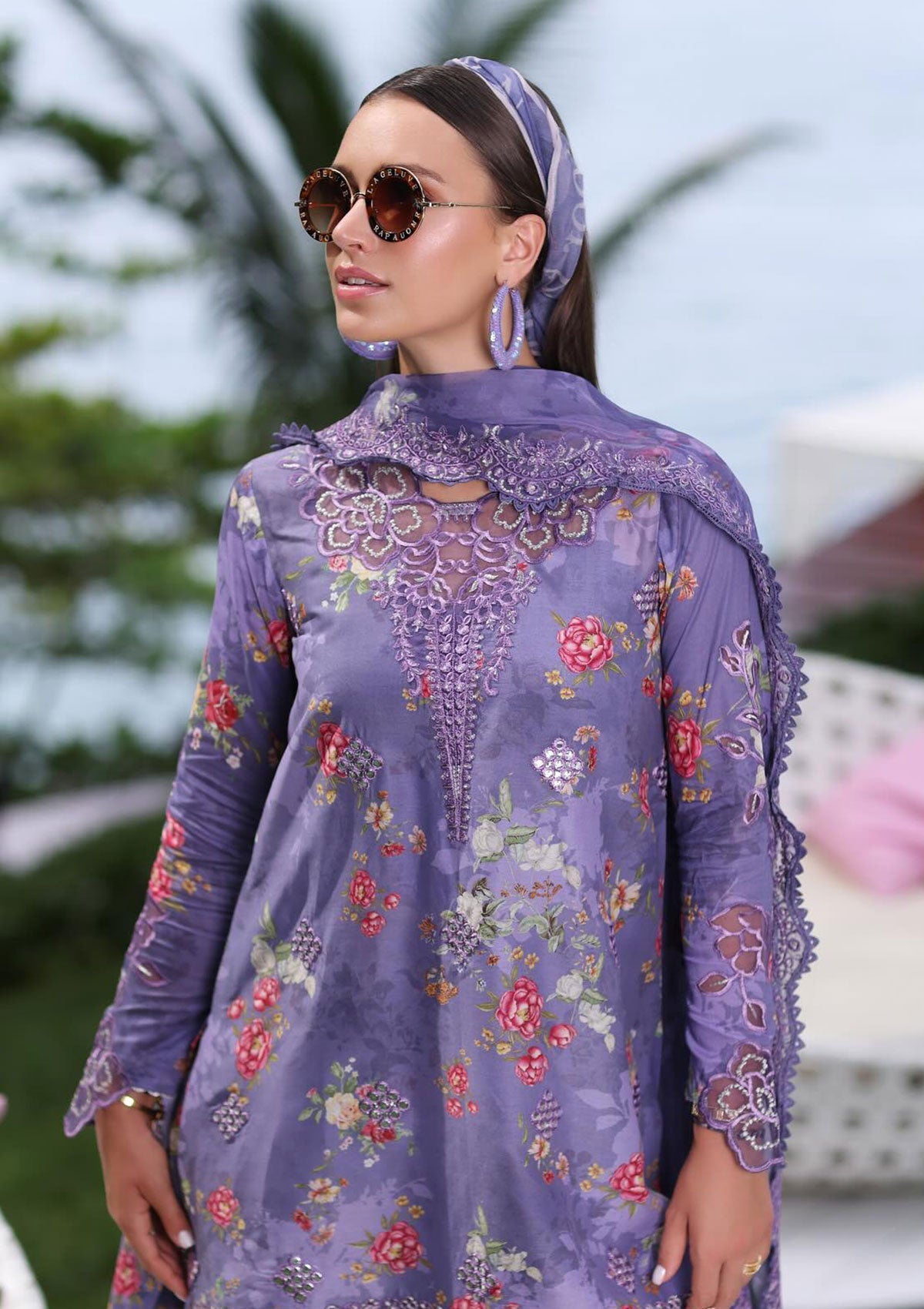 - Digital printed embroidered chiffon dupatta