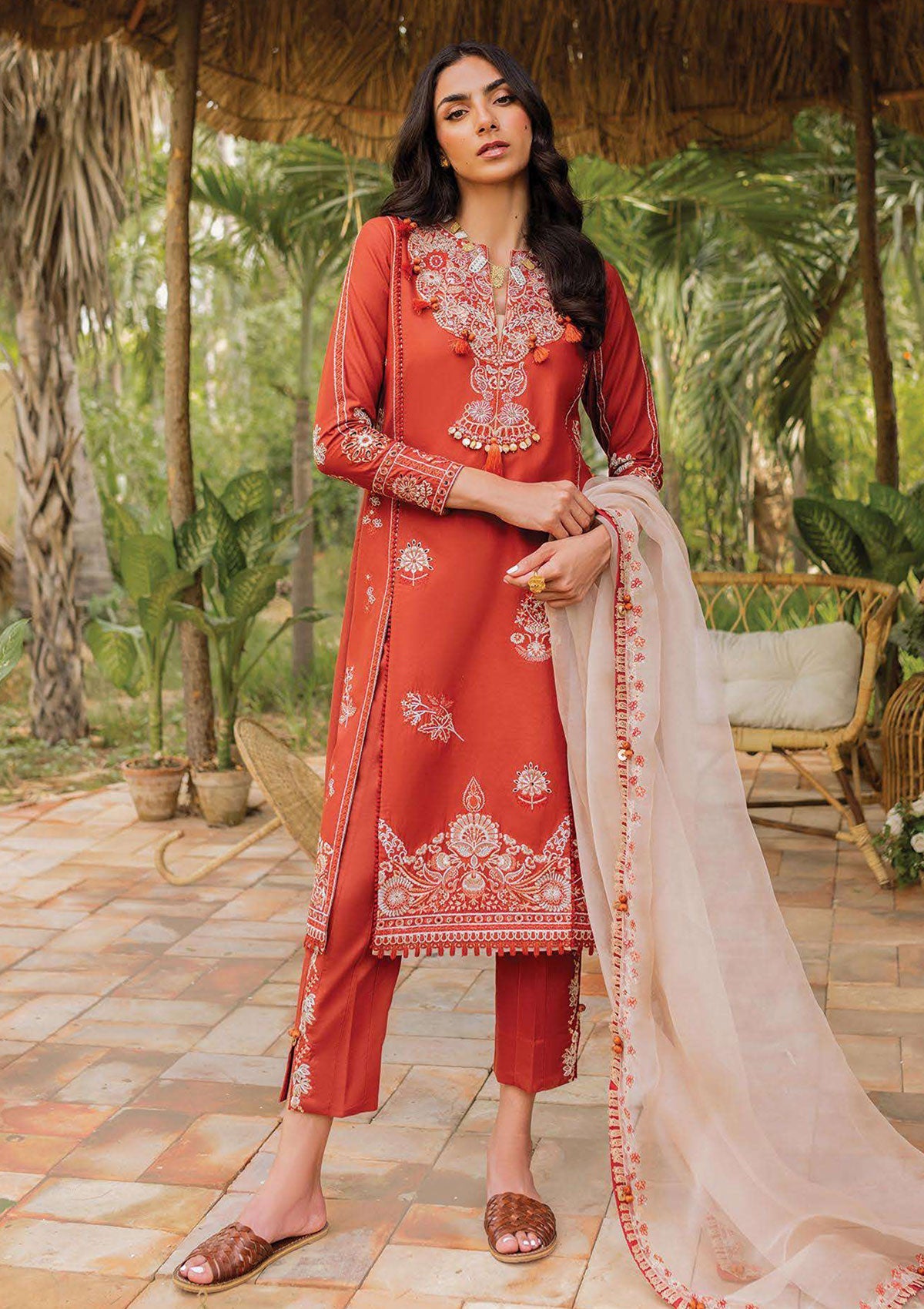 Faizah - Capturing that bohemian spirit , our approach to this summer drop is classic chic ! Rich unmissable color tones with a leaf pattern scatter and gorgeously detailed dense border and neckline. Paired with a complimenting organza dupatta framed in elegantly falling florets!