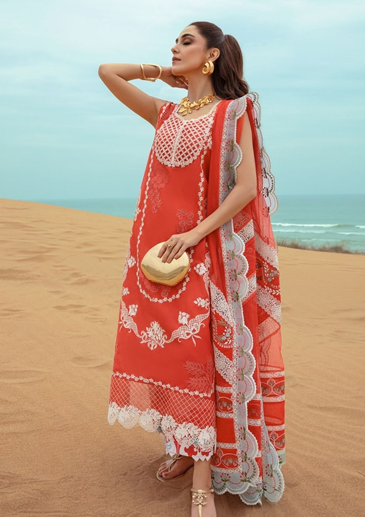 Lawn Collection - Saira Shakira - Crimson - Lawn 24 - D#5B - Stars of Fire - Fiesta Coral