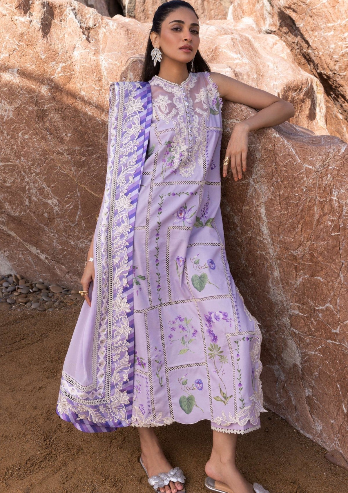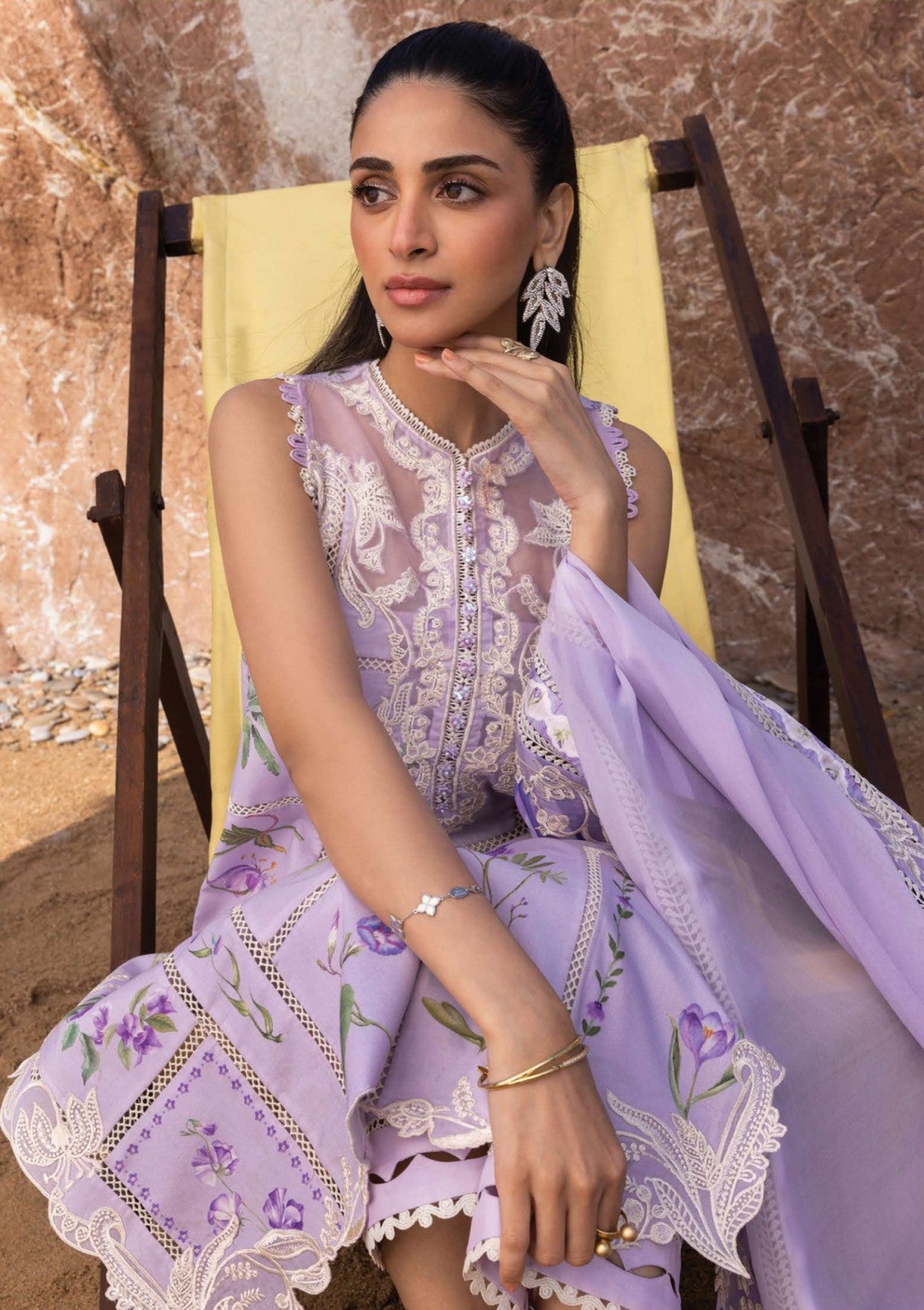 - 0.67 METERS PRINTED LAWN WITH HAND STITCHED LACE INSERTS FOR SLEEVES