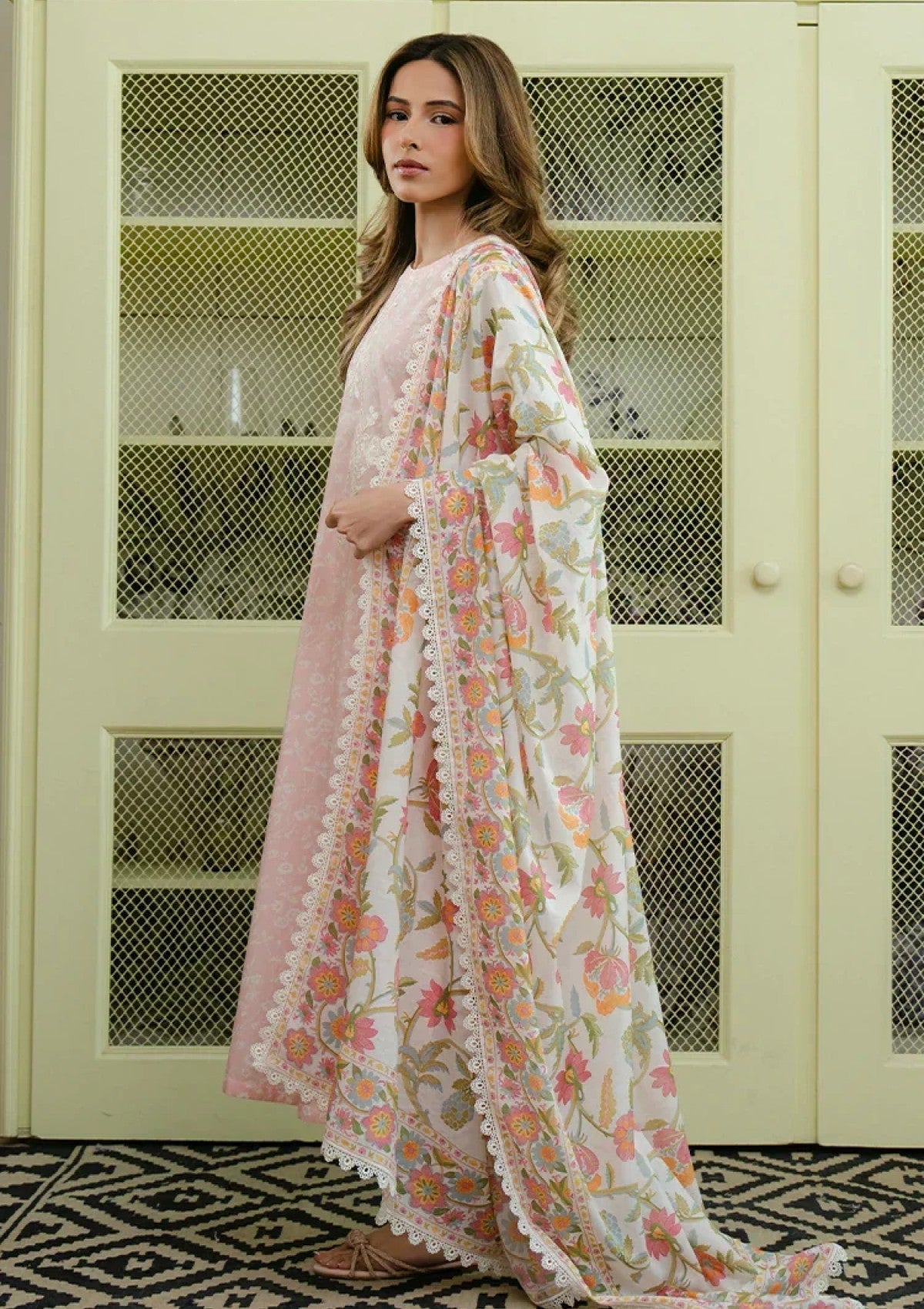 Expertly crafted, this SOFT PINK-3 PC PRINTED SUIT LAWN SUIT features a delicate lawn printed shirt with a beautifully embroidered neckline, paired with a cambric dyed trouser and a matching lawn printed dupatta. Elevate your style with this elegant and versatile ensemble.