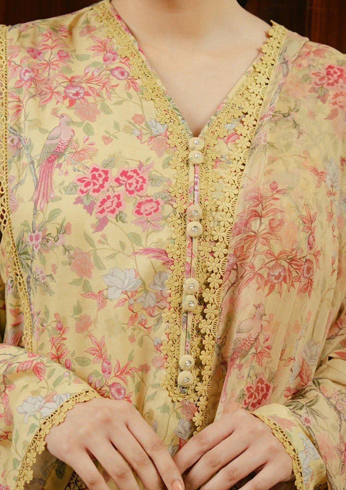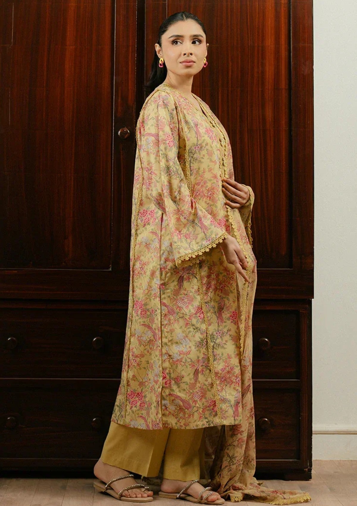 Stay stylish and comfortable this summer with our VERDANT GLOOM-3 PC PRINTED LAWN SUIT. The lawn printed shirt offers a light and breezy feel, while the cambric dyed trouser provides a comfortable fit. The chiffon printed dupatta adds a touch of elegance to your look. Perfect for any occasion, this suit is a must-have for your wardrobe.