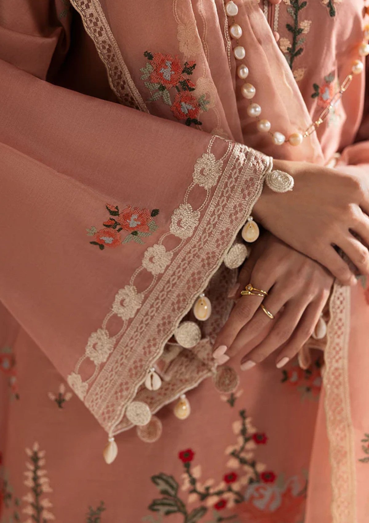 This ROSE QUARTZ-3PC PRINTED LAWN SUIT is crafted with expert precision and attention to detail. The lawn embroidered front and sleeves add an elegant touch, while the dyed back provides comfort and versatility. The cambric dyed trouser with 60" embroidered patti adds a sophisticated element. Complete the look with the organza embroidered dupatta for a truly stunning ensemble.