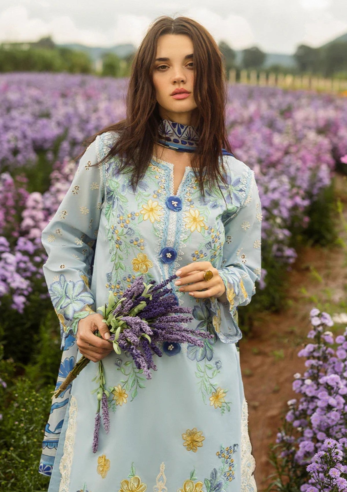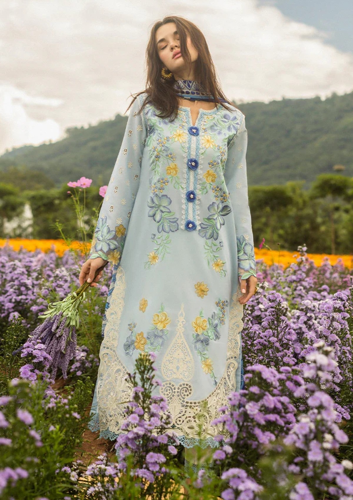 - Embroidered lawn front