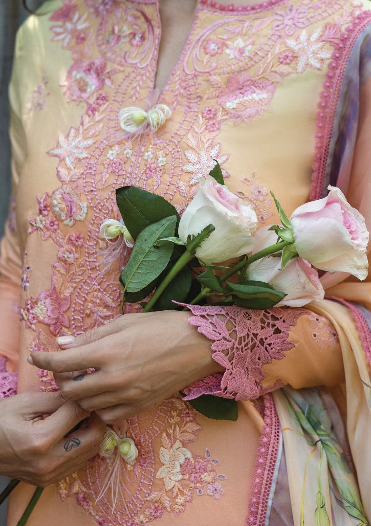 - Printed chikan embroidered lawn sleeves