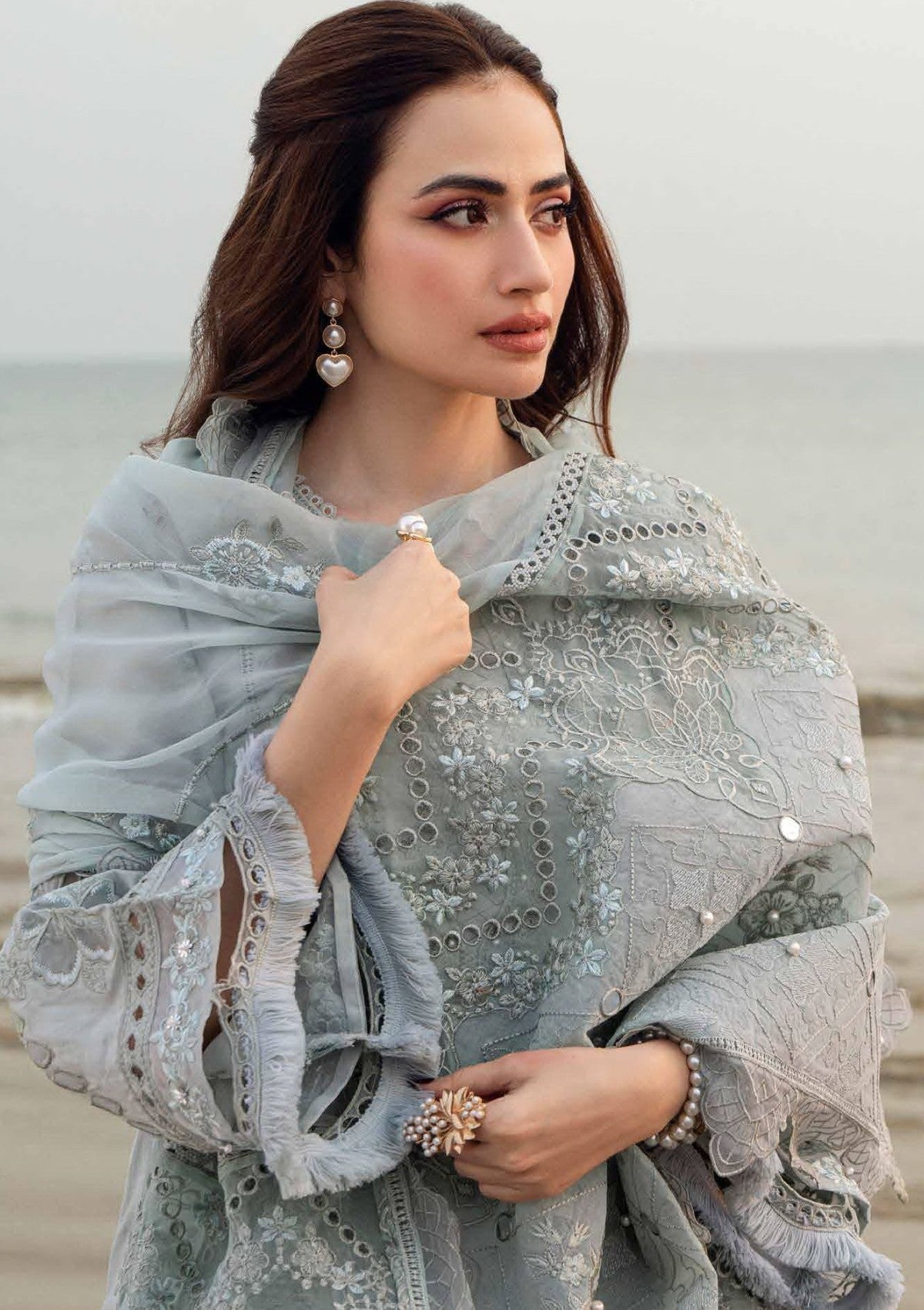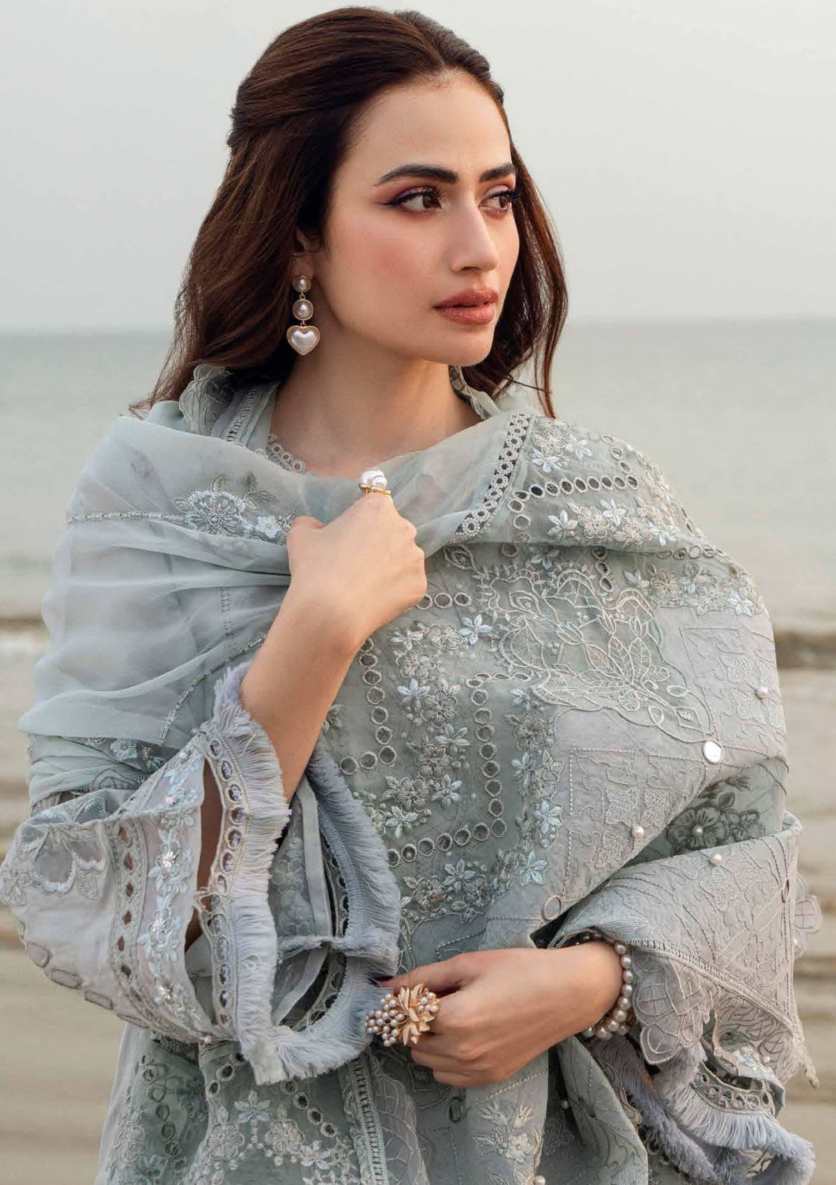 - Embroidered, Laser Cut And Embellished Swiss Voil Lawn Shirt