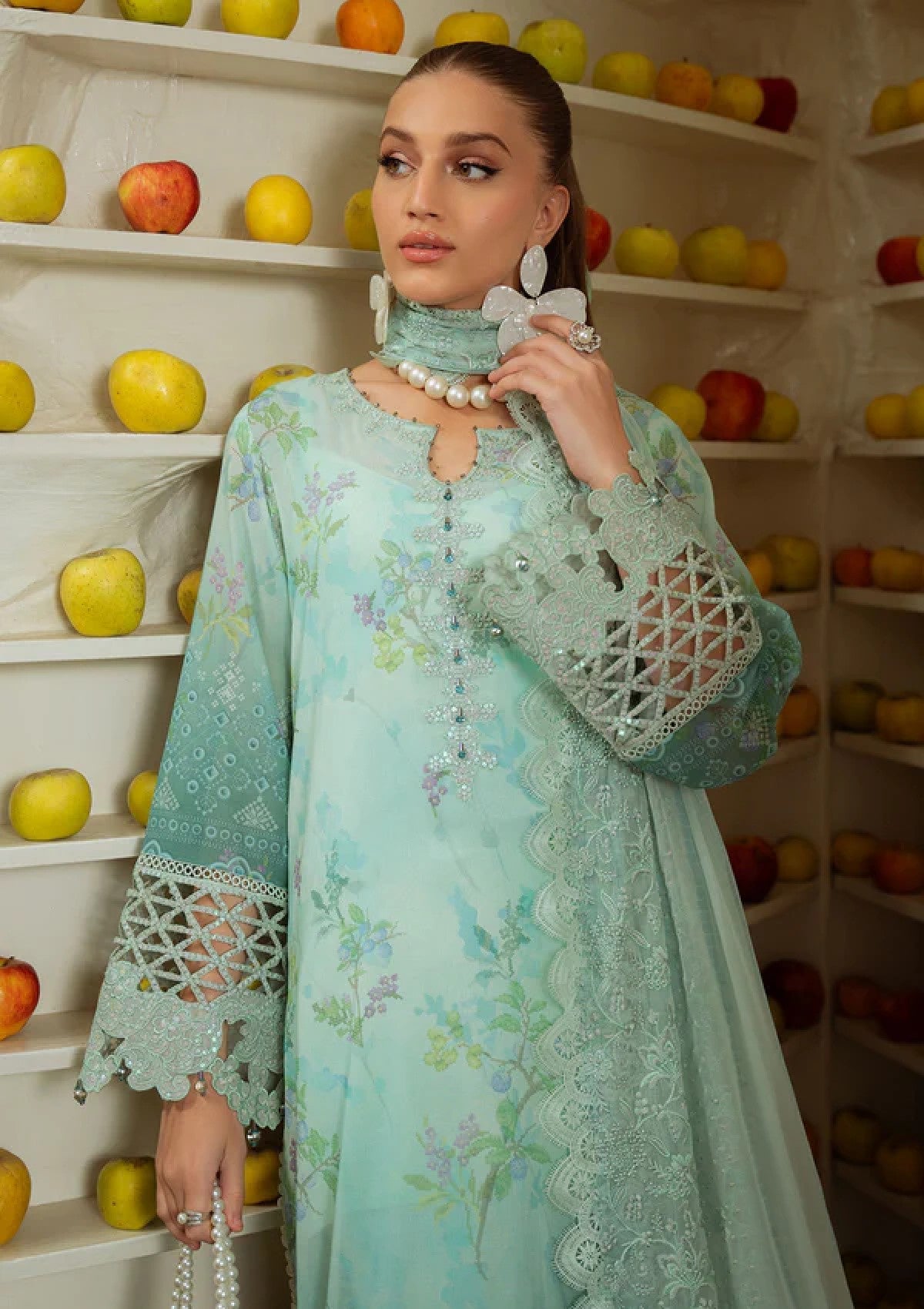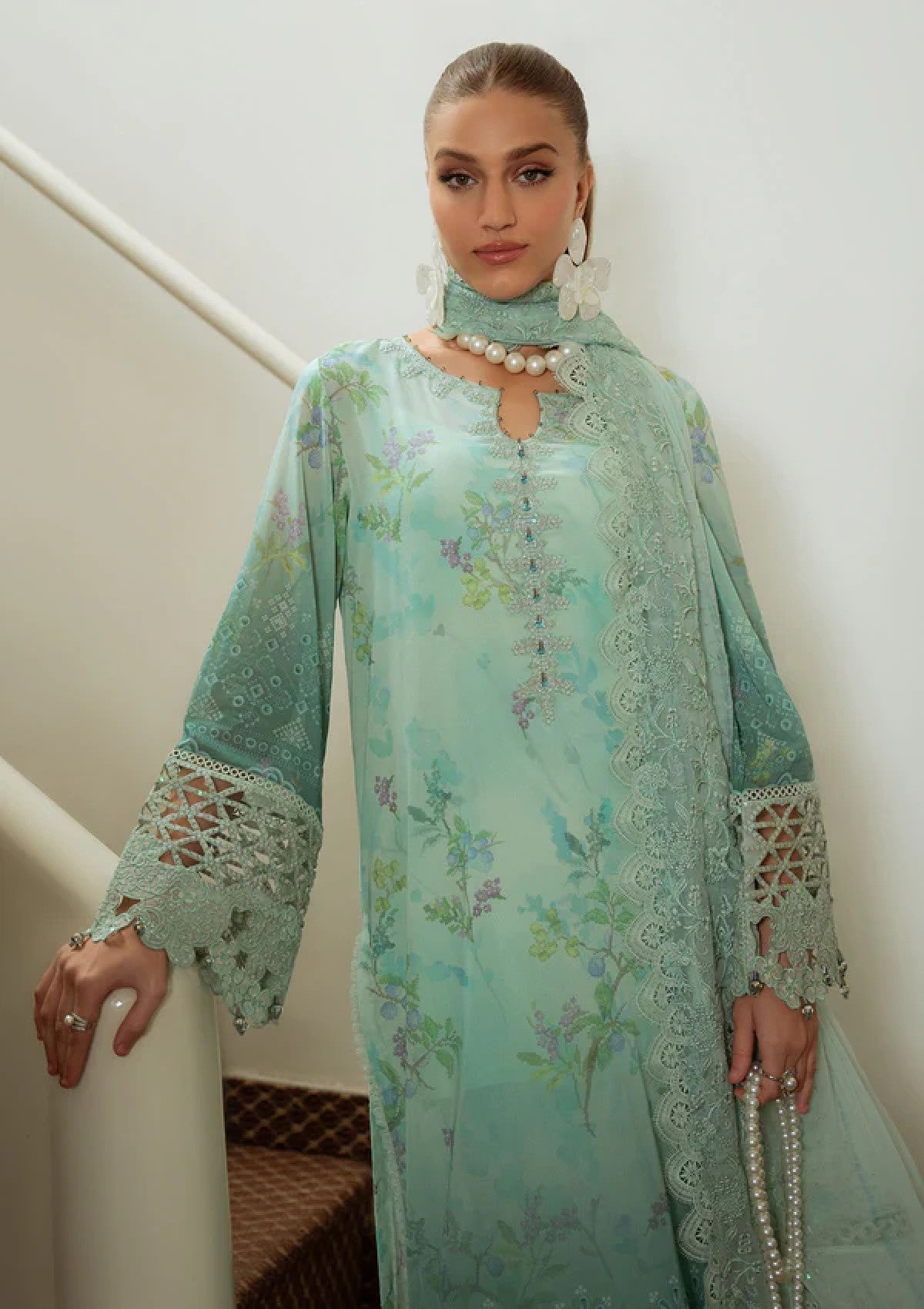 - EMBROIDERED AND PRINTED SWISS LAWN SHIRT