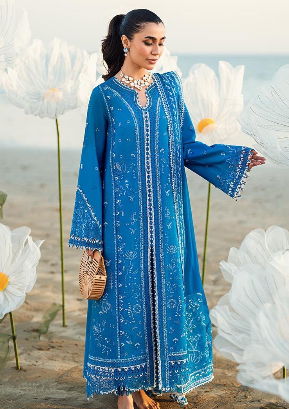 Chikankari Embroidered Border (Front & Back)