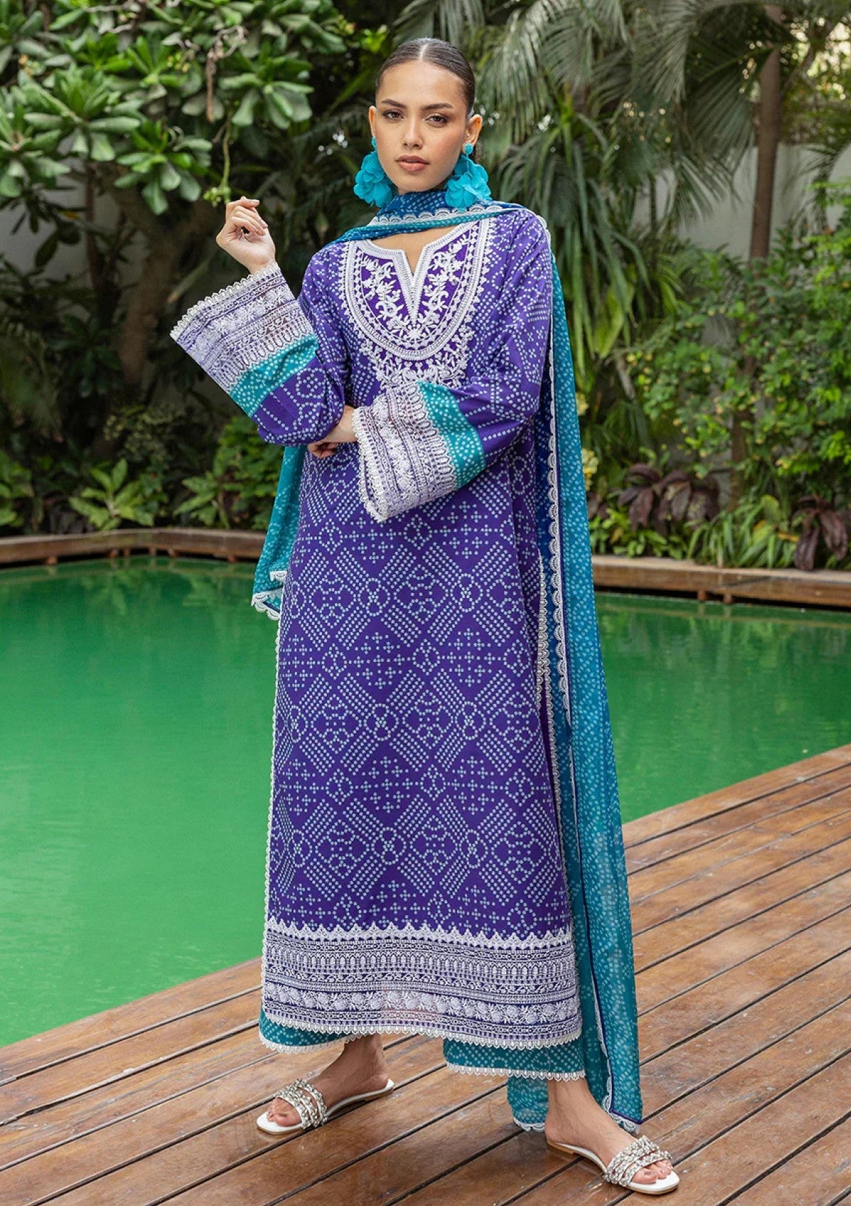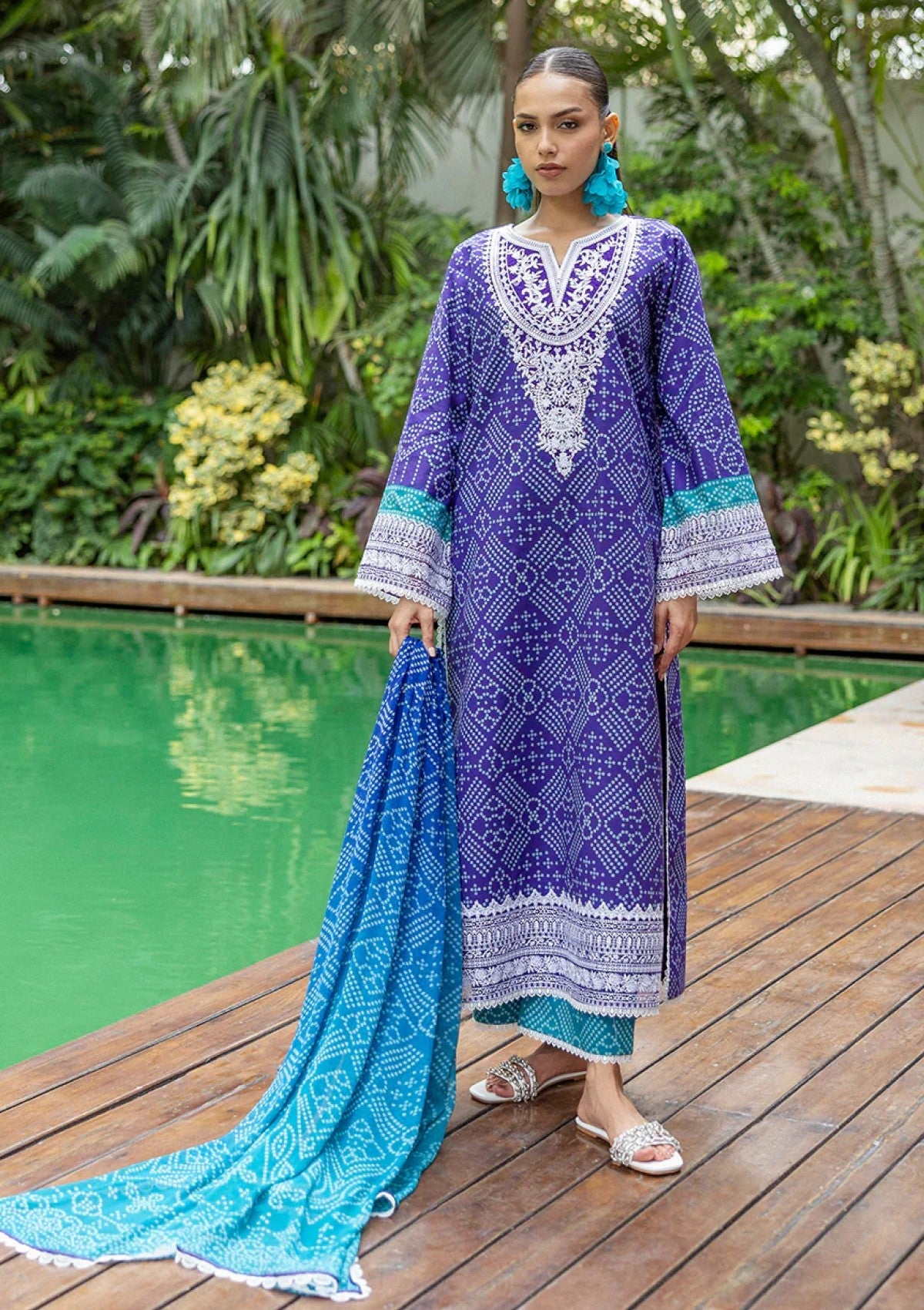 Embrace royal radiance with Lisa, an unstitched design from Zainab Chottani's exclusive Lawn Collection, Volume 2. This piece is a celebration of rich color on soft, luxurious lawn fabric, adorned with intricate, eye-catching print on royal blue. The true luxury shines through in the delicate embroidery that beautifully highlights the neckline, the stylish sleeve ends, and the elegant borders on hem. Lisa offers the perfect canvas to create a comfortable yet undeniably grand look, designed for those who appreciate true splendor.