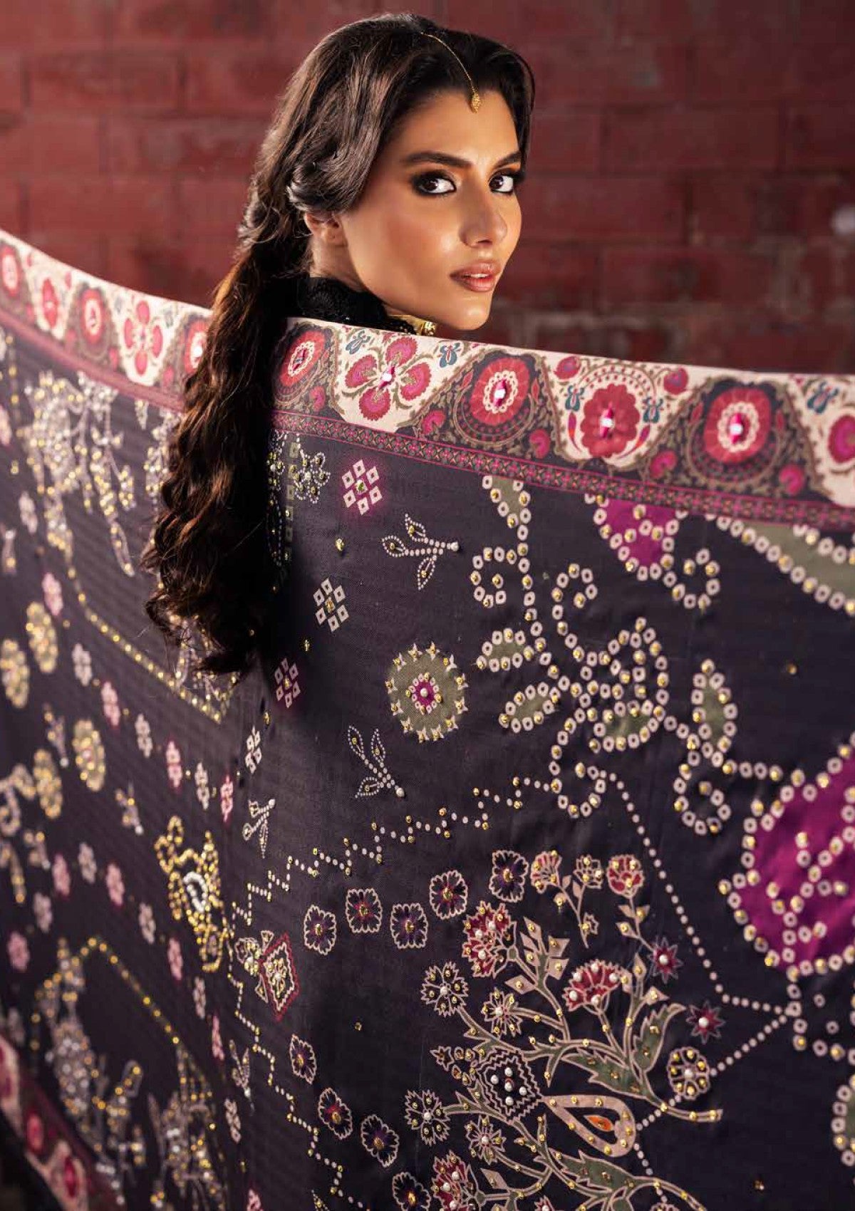 - Hand Embellished Printed Woolen Shawl With Mukesh Work