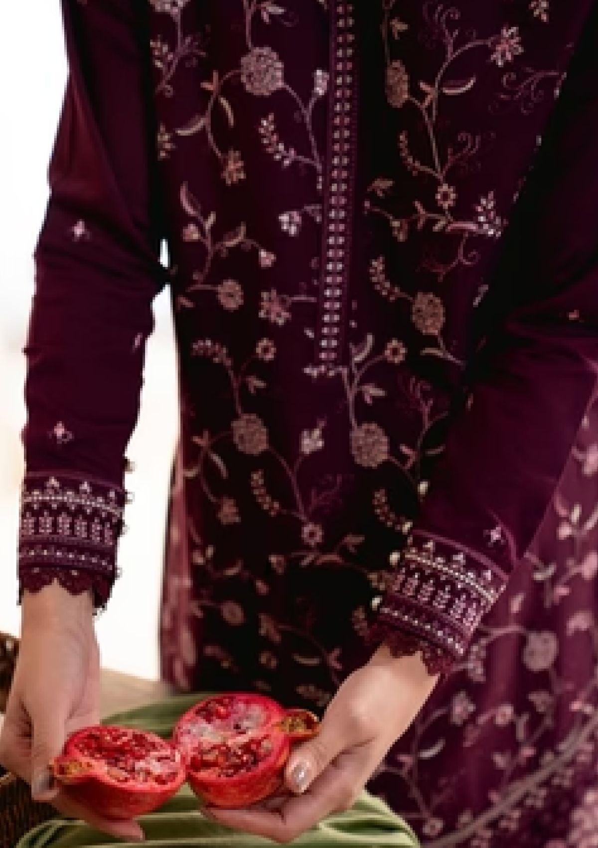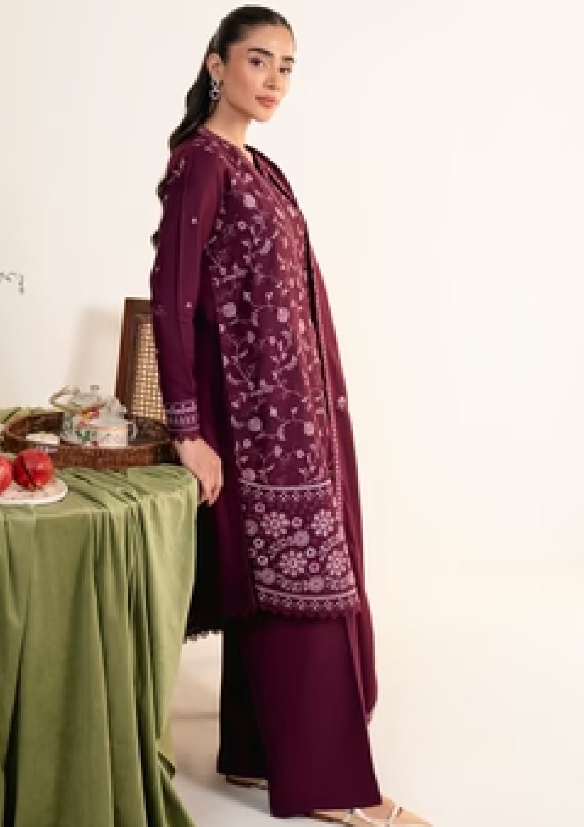 - A true embodiment of winter elegance, this plum-colored karandi ensemble exudes charm and sophistication. Intricately embroidered on the front with delicate details and a graceful circular daman border, it strikes the perfect balance between tradition and modernity. The look is elevated with a luxurious karandi shawl, exquisitely embroidered on all four sides, making it a versatile choice for cozy winter gatherings and festive occasions. Wrap yourself in the warmth and allure of "Berry Blush," and make a statement this season.