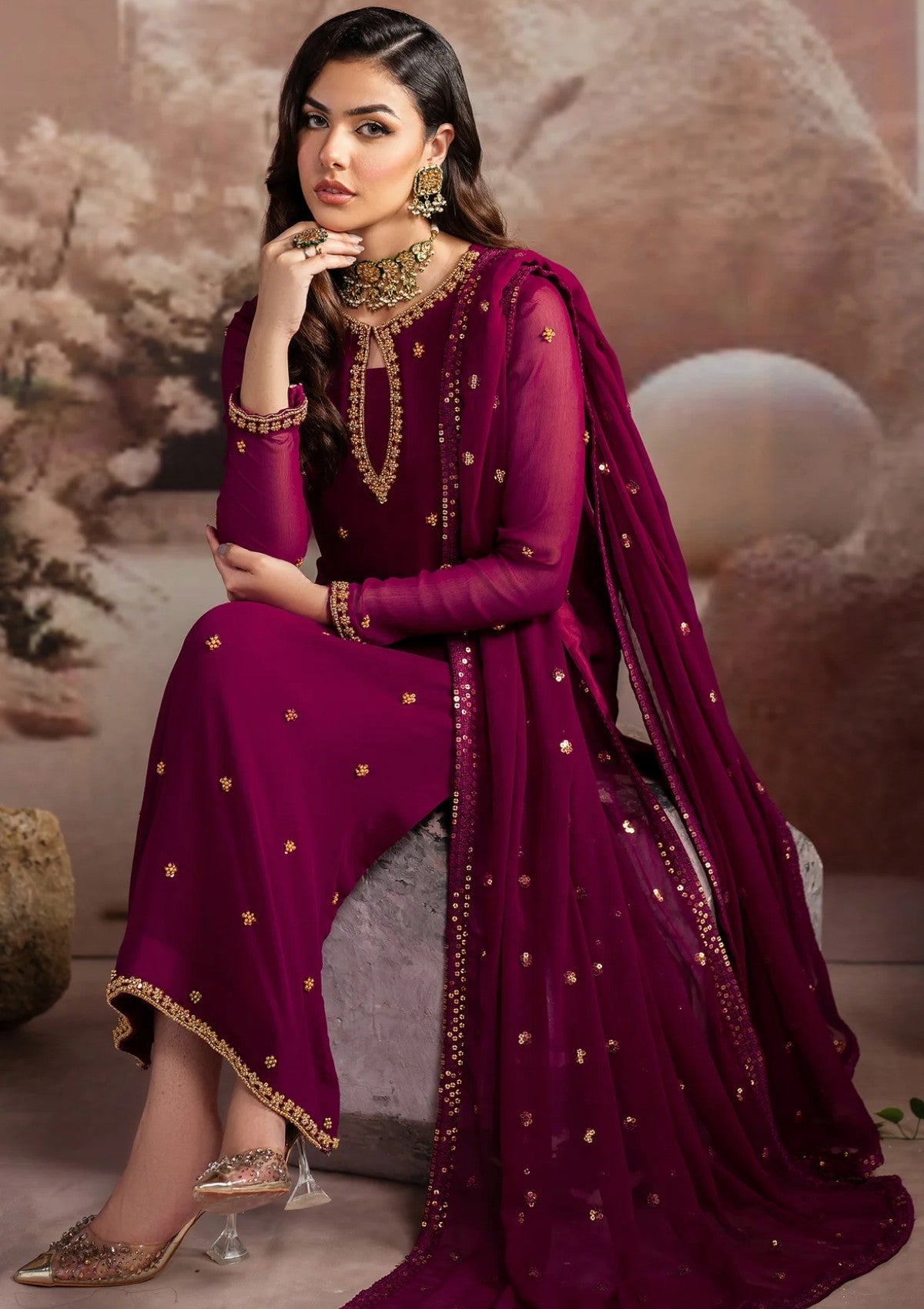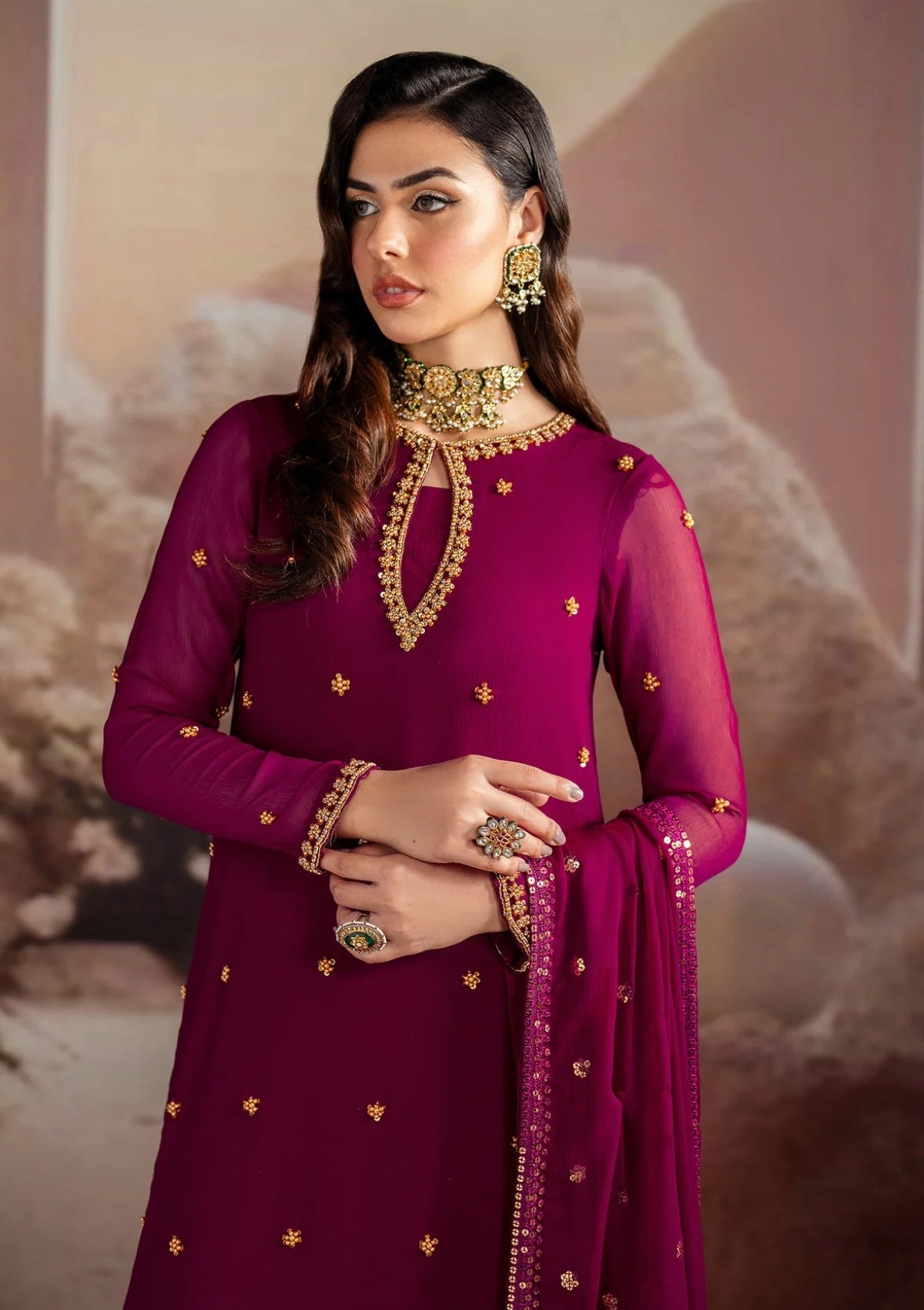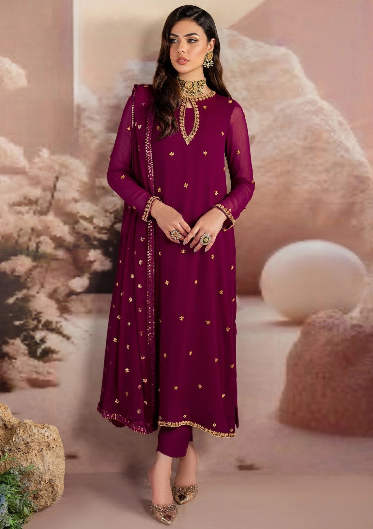 - Embroidered Chiffon With Hand work